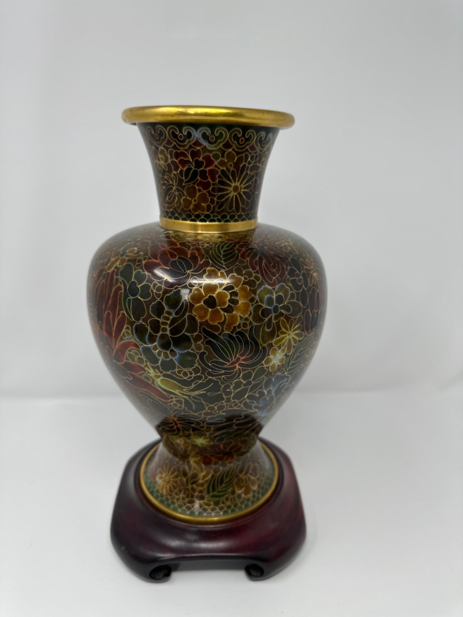 Lot # 46 - Vintage Cloisonné Vase On Wood Stand -10T x 5W