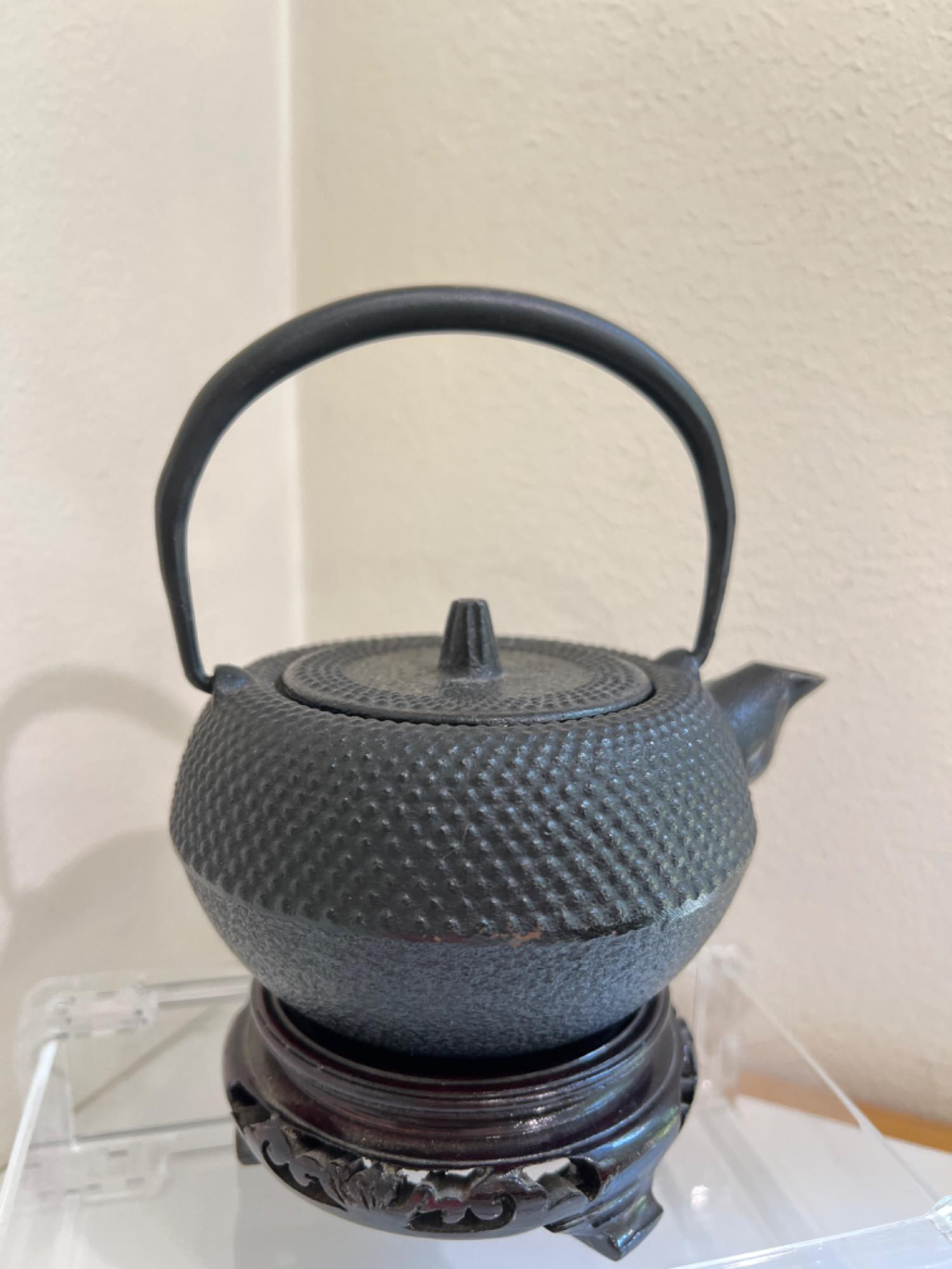 Signed NANBU Tekki tea kettle plus tea infuser, 5” tall x 4” wide