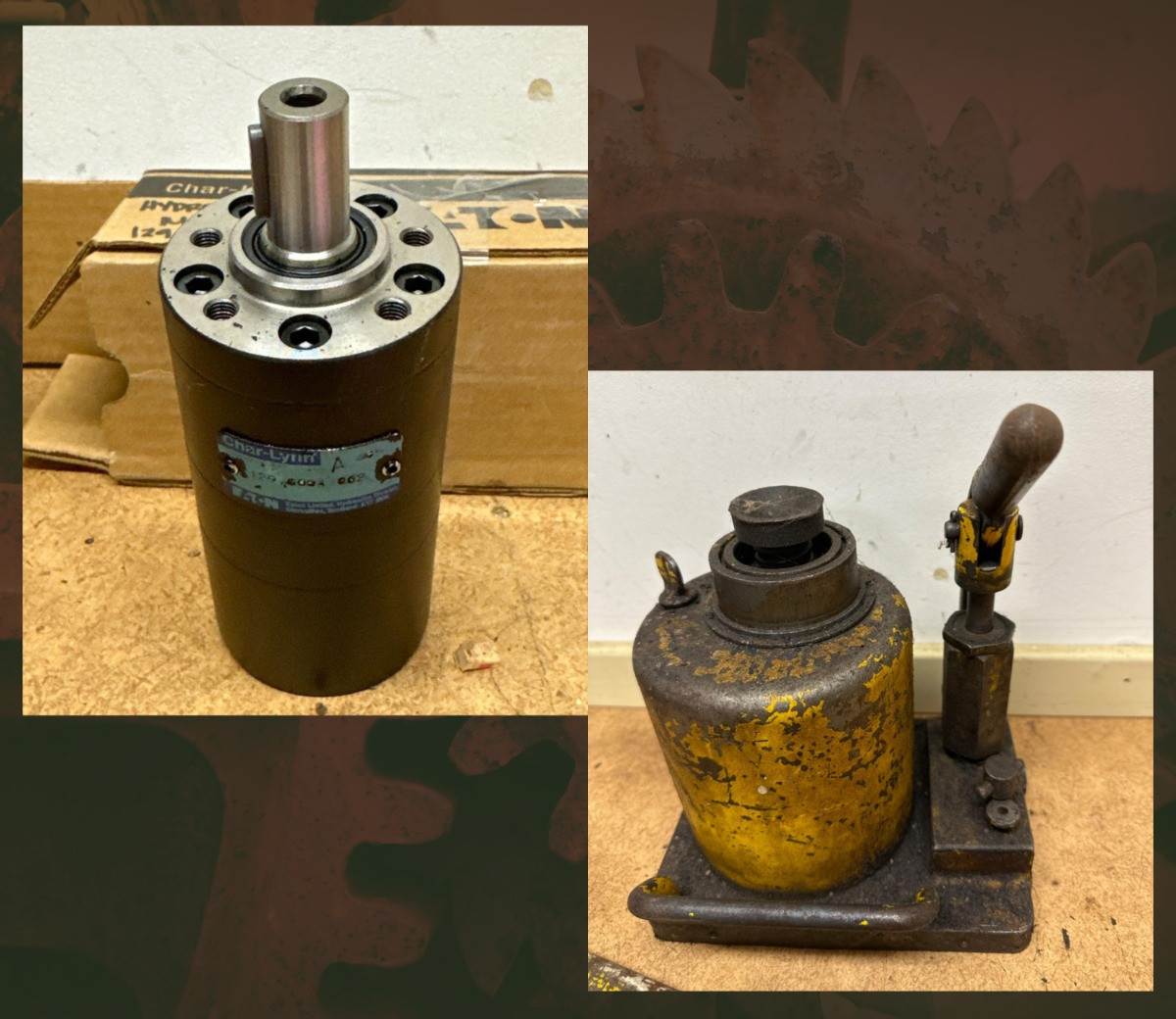 Eaton Char-lynn Hydraulic motor (129-0004-002) Vintage Hydraulic Jack with metal pipe extender
