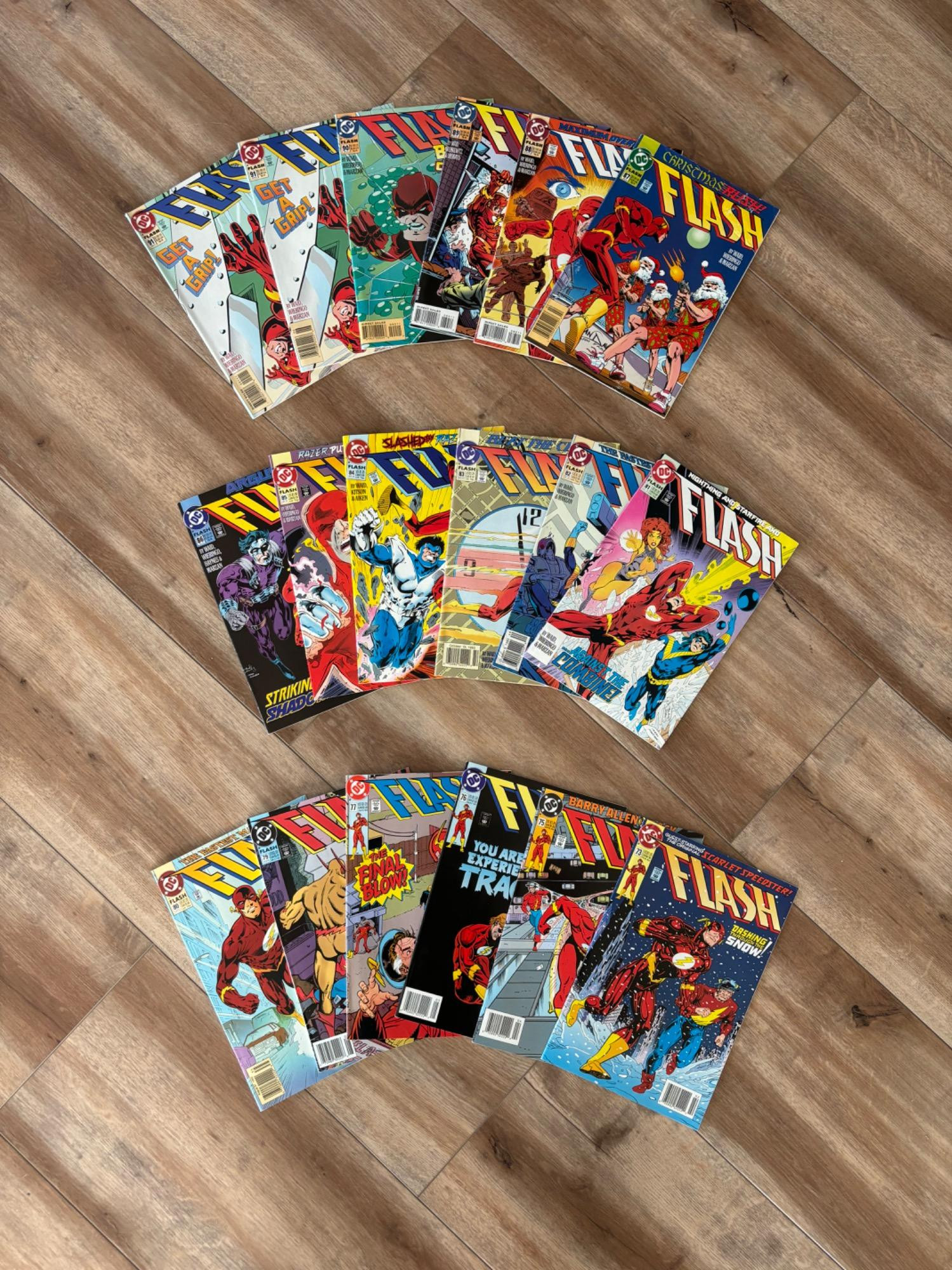 A collection of DC comics from the Flash series! Flash #73 has a tiny tear on the top left of the cover! Despite that, they are all in relatively good shape!