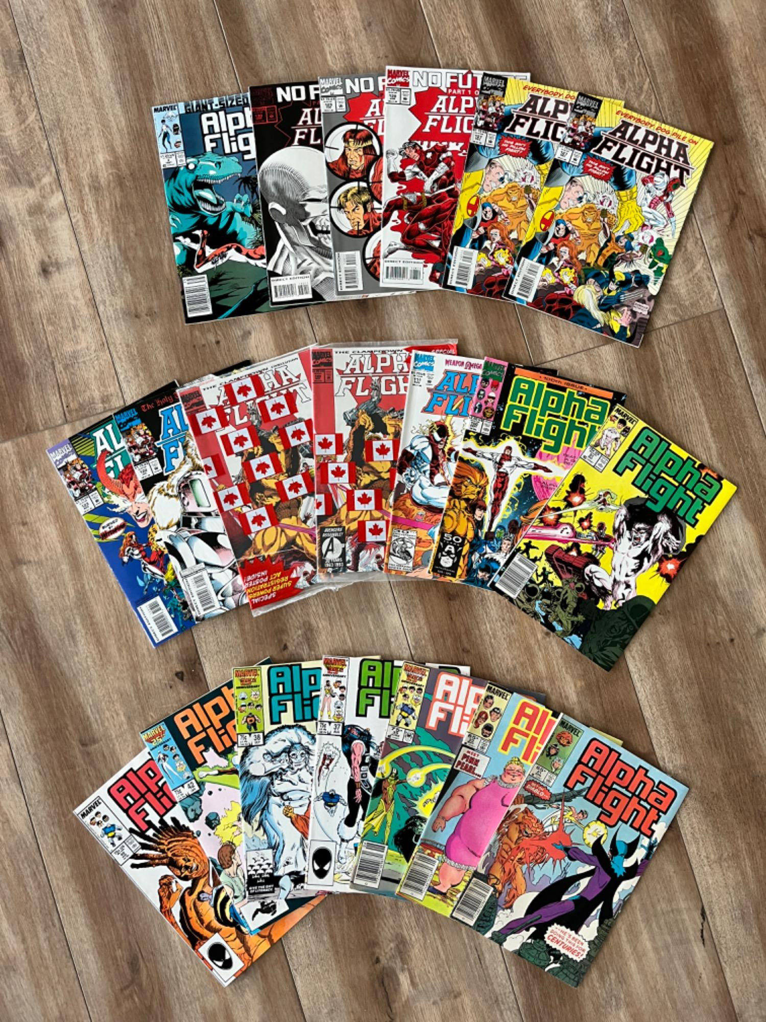 A collection of various issues of the Alpha Flight Series Sealed and opened issue #120 with bonus posters! Conditions vary, but they are all good for reading with excellent coloring!