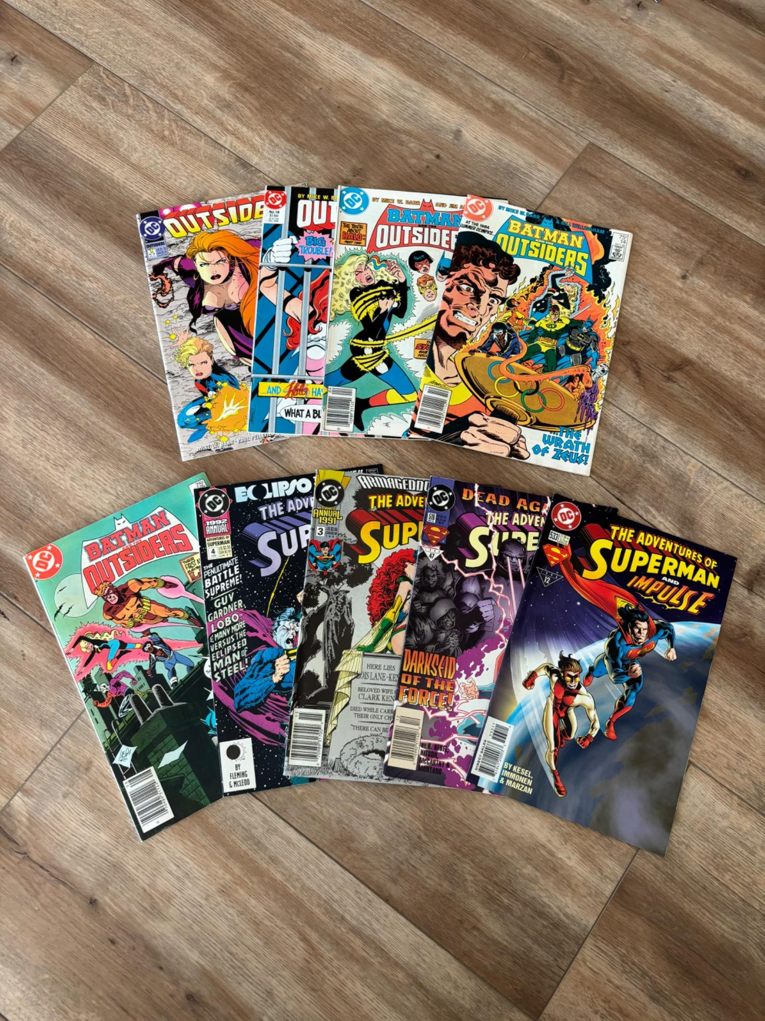 A collection of various issues of the Outsiders and Adventures of Superman series. Conditions vary, but they are all good for reading with excellent coloring!