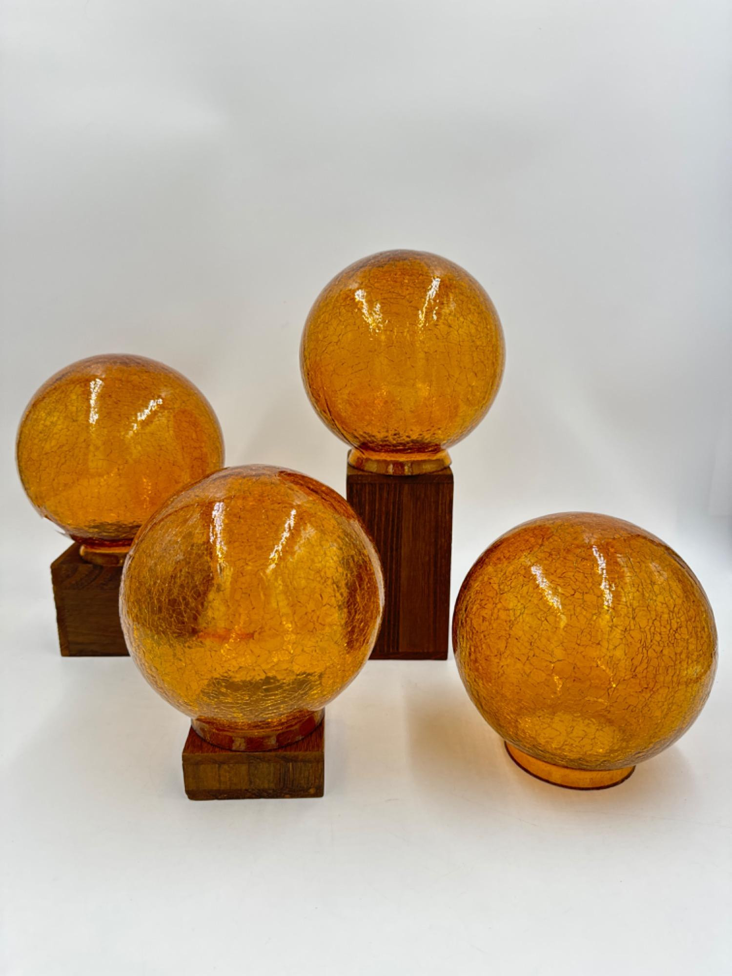 (4) Vintage Amber Crackle Glass Round Orb Light Covers 6”T 3 1/8” opening All are in great condition