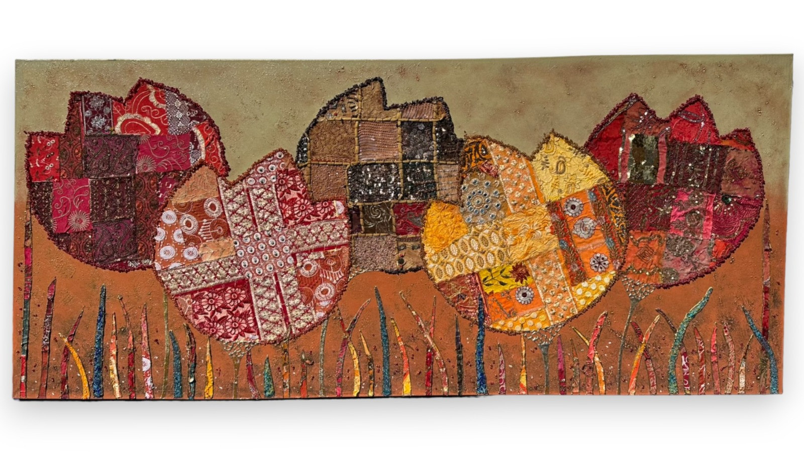 Lot # 37 - Pier 1 Imports Canvas Embroidered Tulips Wall Art - 67" x 29.5"