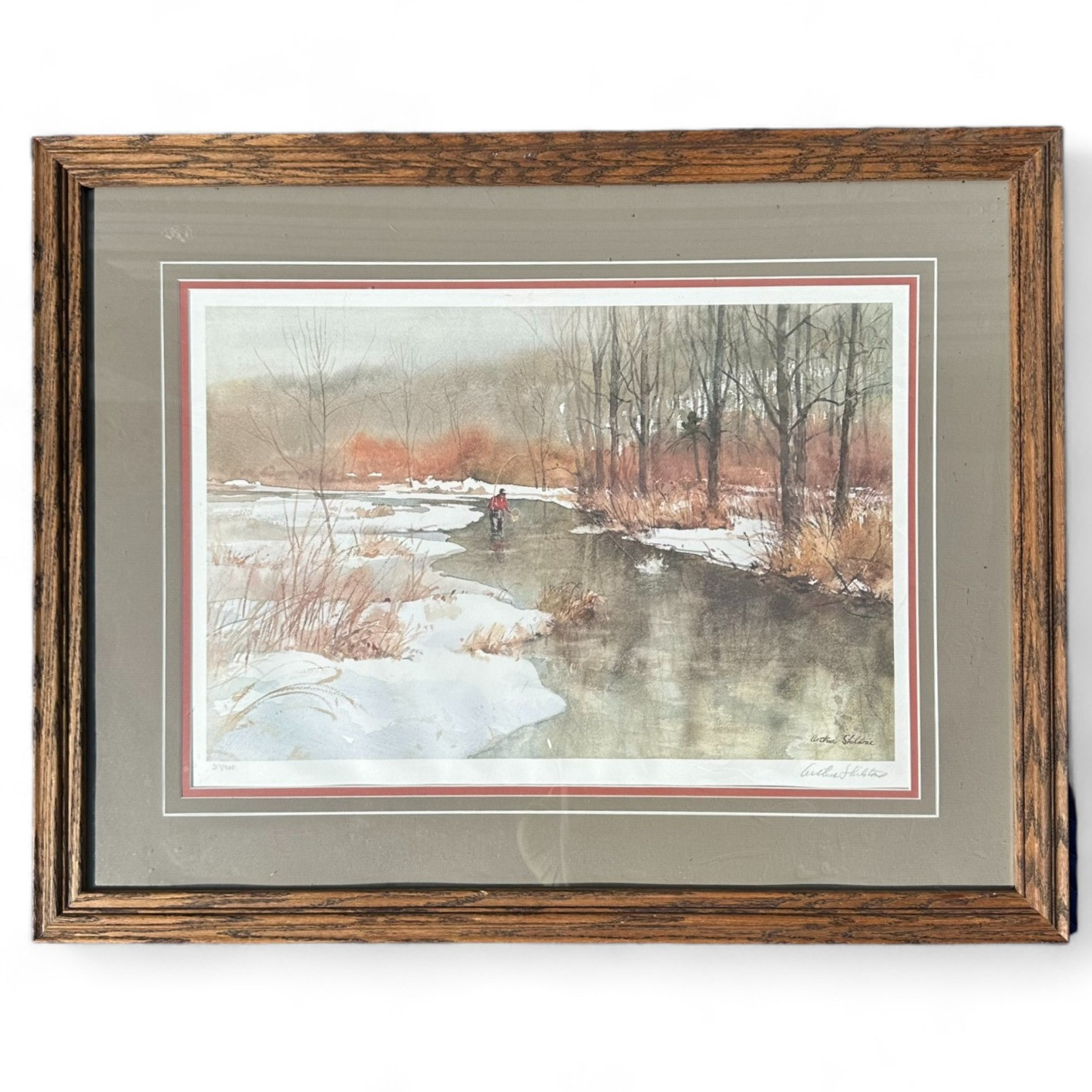 S/N Arthur Shilstone Watercolor Fishing Art Print - 317/950 Frame measures: 29“ x 23“ Frame is good condition