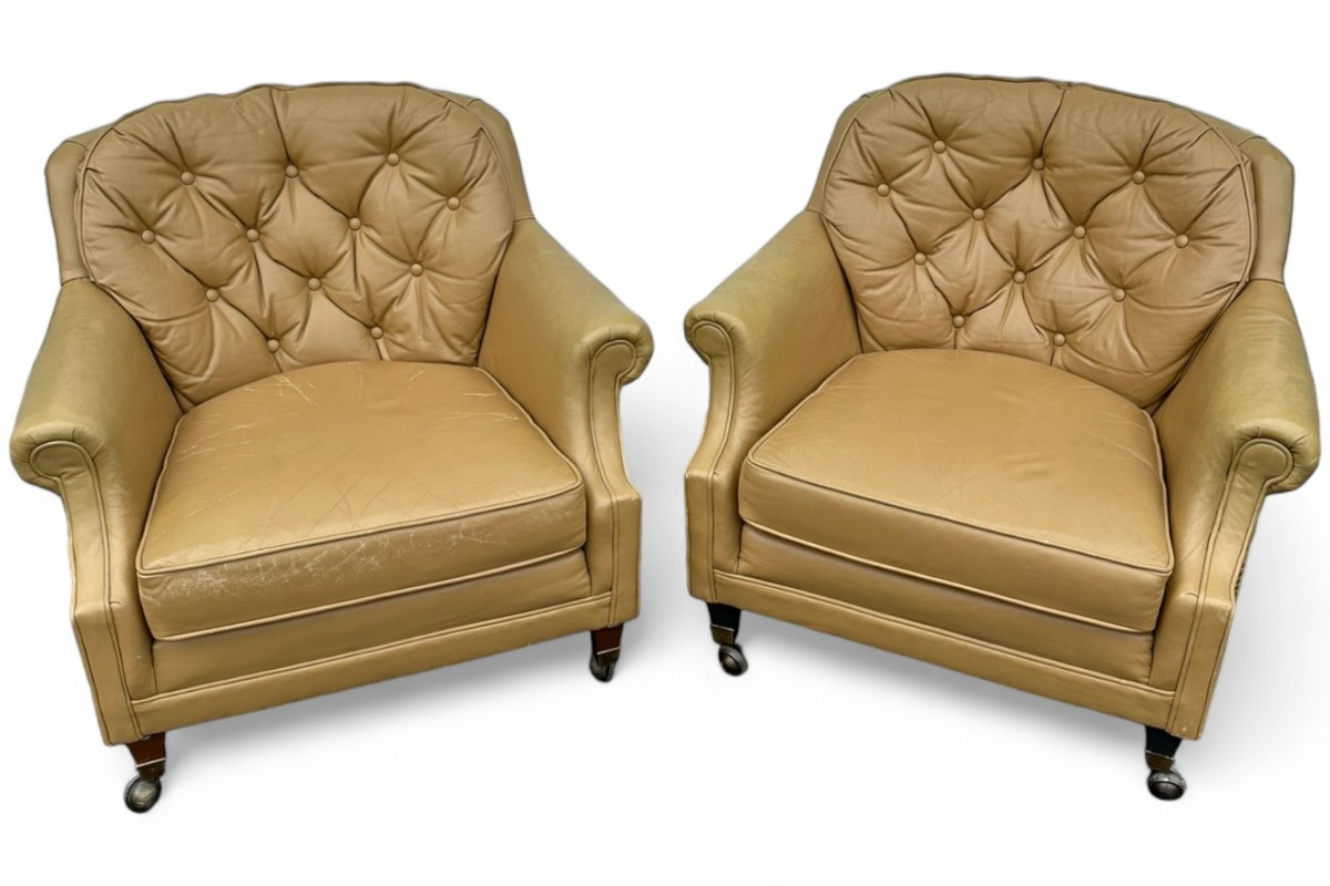 Lot # 175 - 1980s Camel Leather Flexsteel Armchair Pair on Casters