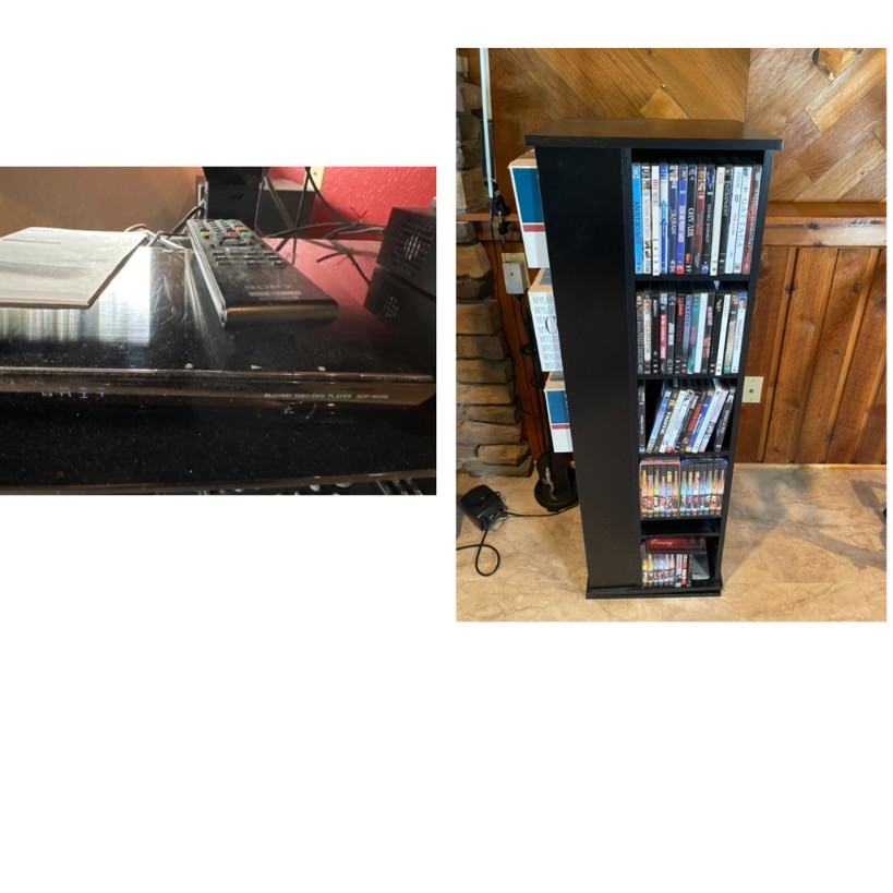 Sony Blu-Ray Disc DVD Player With Remote/Manual and Tower of DVDS Powers up works well comes with the remote and manual.