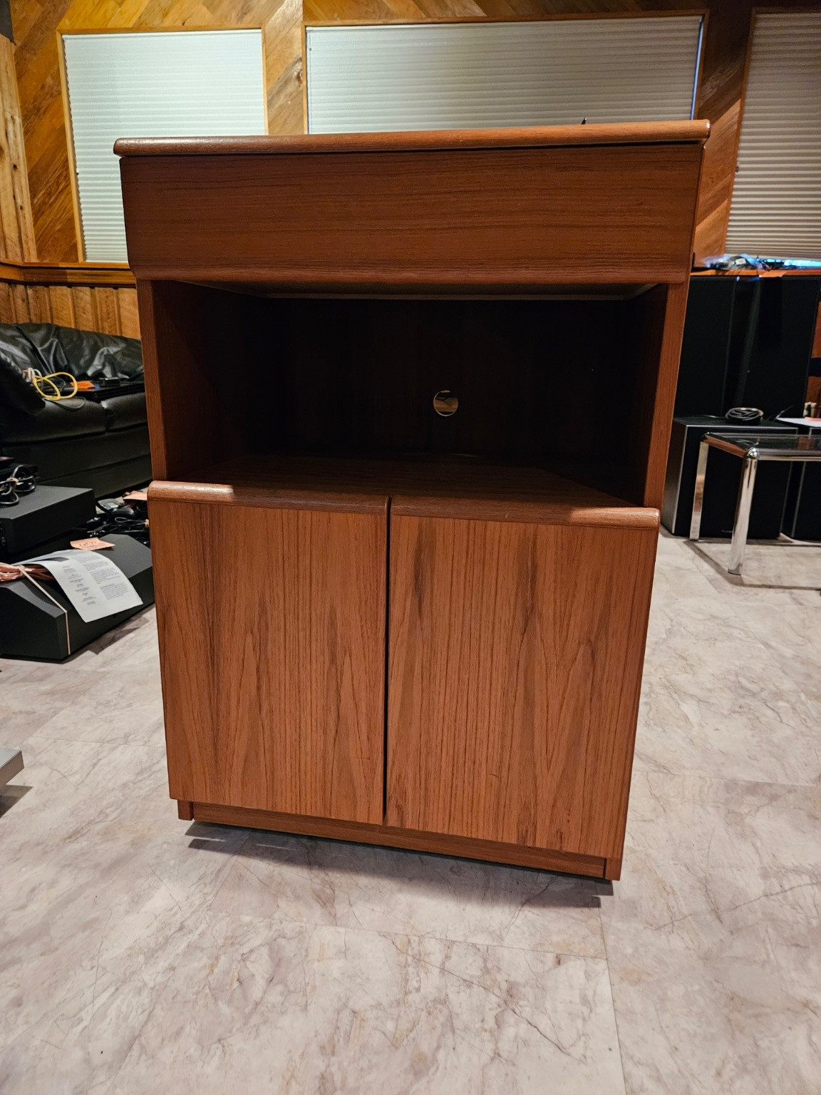 24x18x34 Place for cord in back. Could be used for microwave, tv or side table.