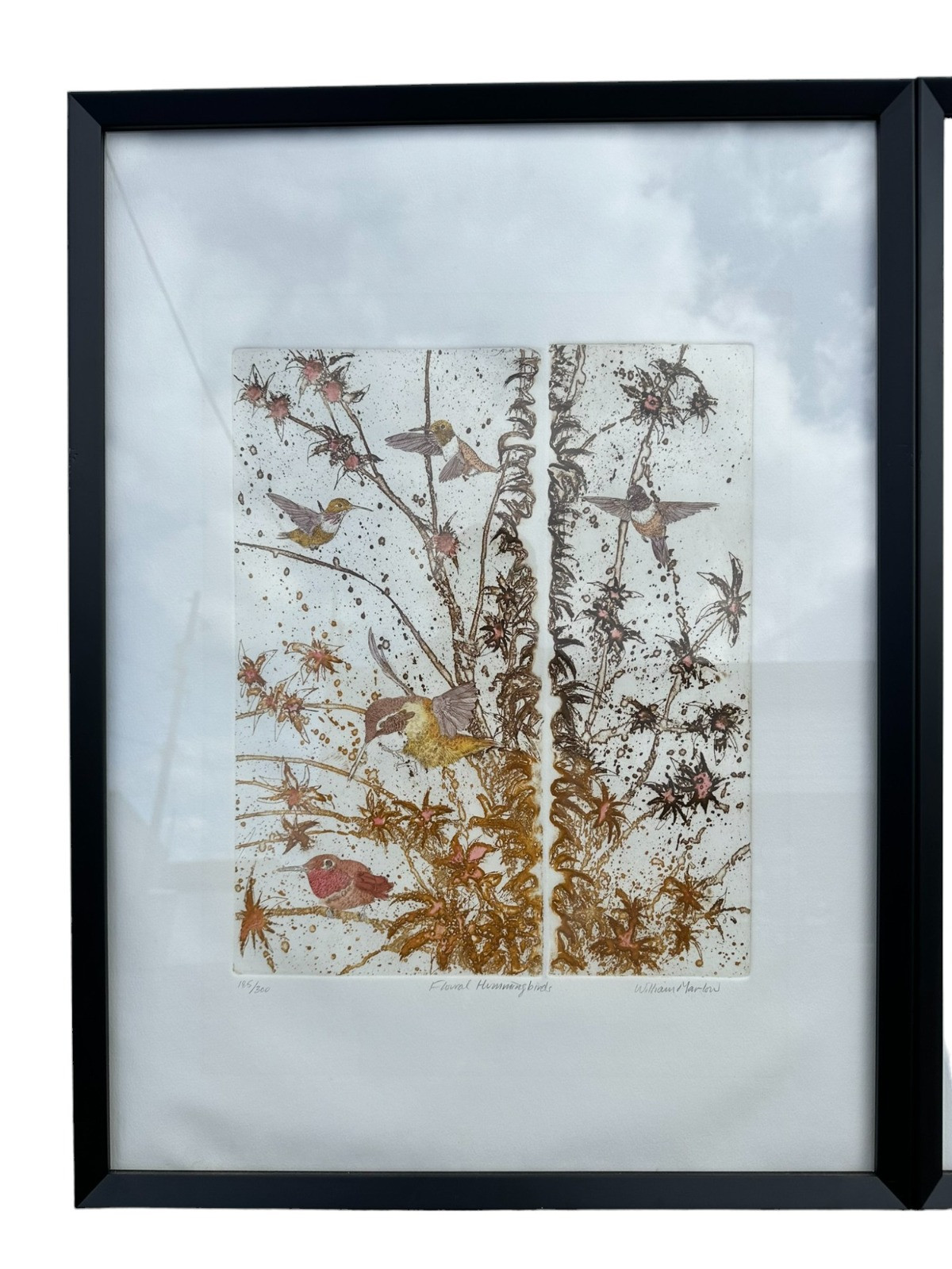 Signed and numbered 185/300 "Floral Hummingbirds" by William Marlow Frame measures: 23.25" x 31"