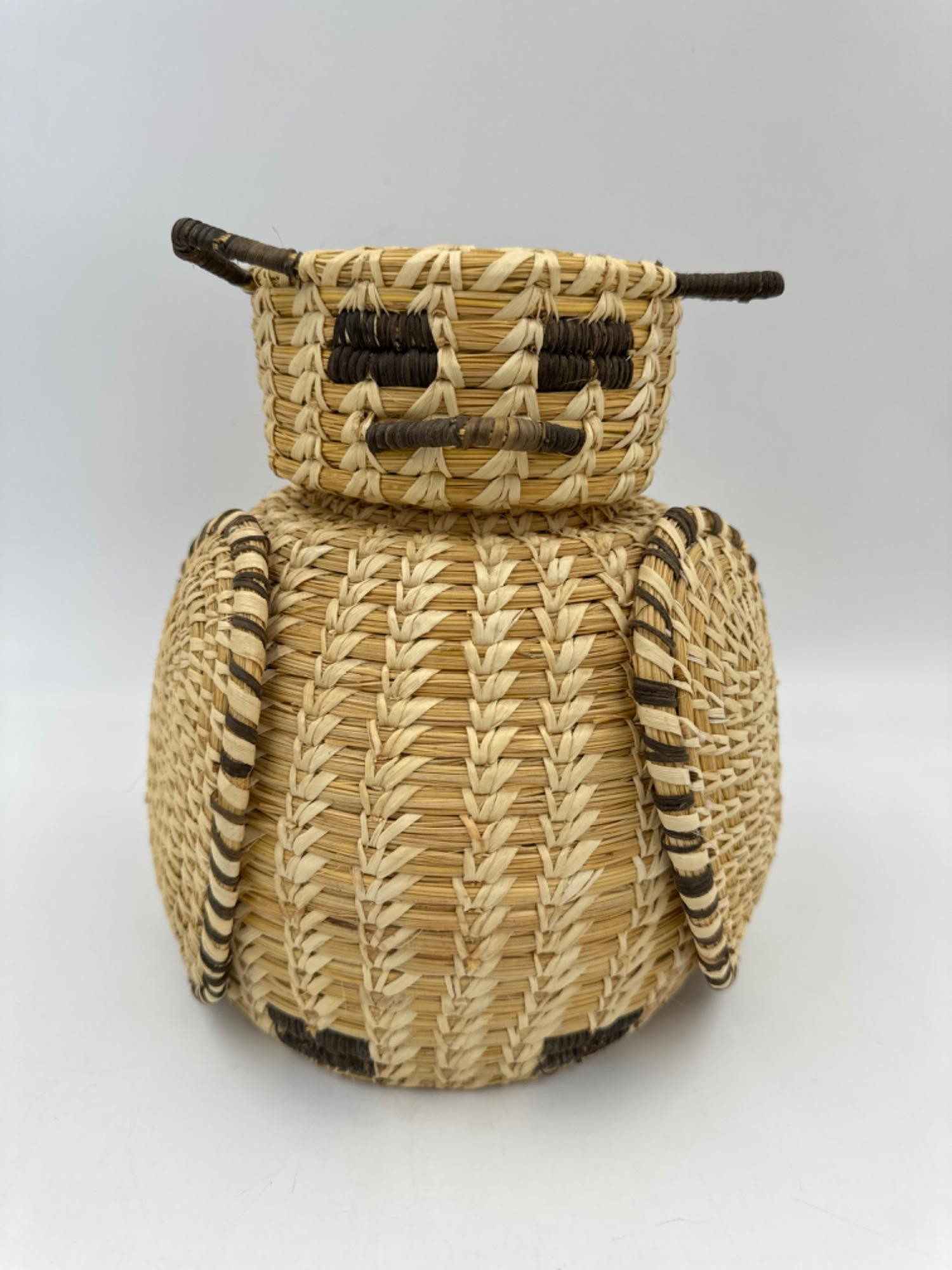 Tohono O'Odham Papago American Indian Owl Bird Effigy Basket Unknown craftsperson Measures: 9.25”T x approx 8”D Purchased for $80 in 2011 Great condition