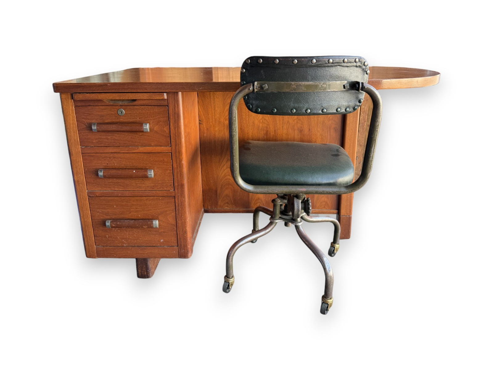 Lot # 60 - Mid Century Deco Teachers Desk w/Industrial Swivel Chair