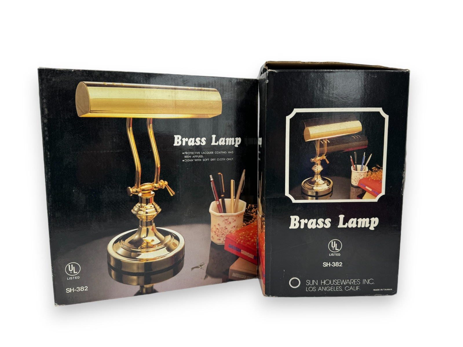 (2) New Old Stock! Brass Bankers Desk Lamps Sealed inside the box Boxes measure: 11.5"T x 11" x 7"