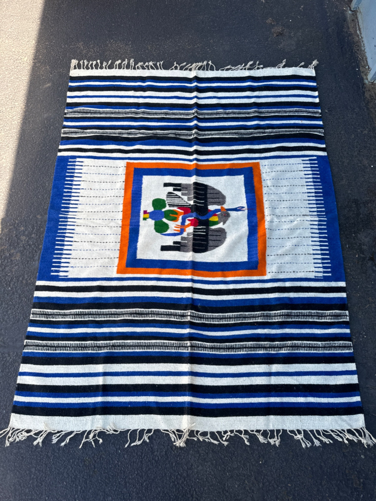 HUGE Vintage Hand Woven Mexican Folk Art - Eagle & Snake Measures: 74" x 56" - add 2.5” fringe on each end Colors are vibrant - nice condition! "Aztec legend that foretold the founding of Tenochtitlan, the capital of the Aztec Empire. In ancient times, the gods told the Aztecs that they would find the perfect place to build their city when they saw an eagle on a cactus, eating a serpent."