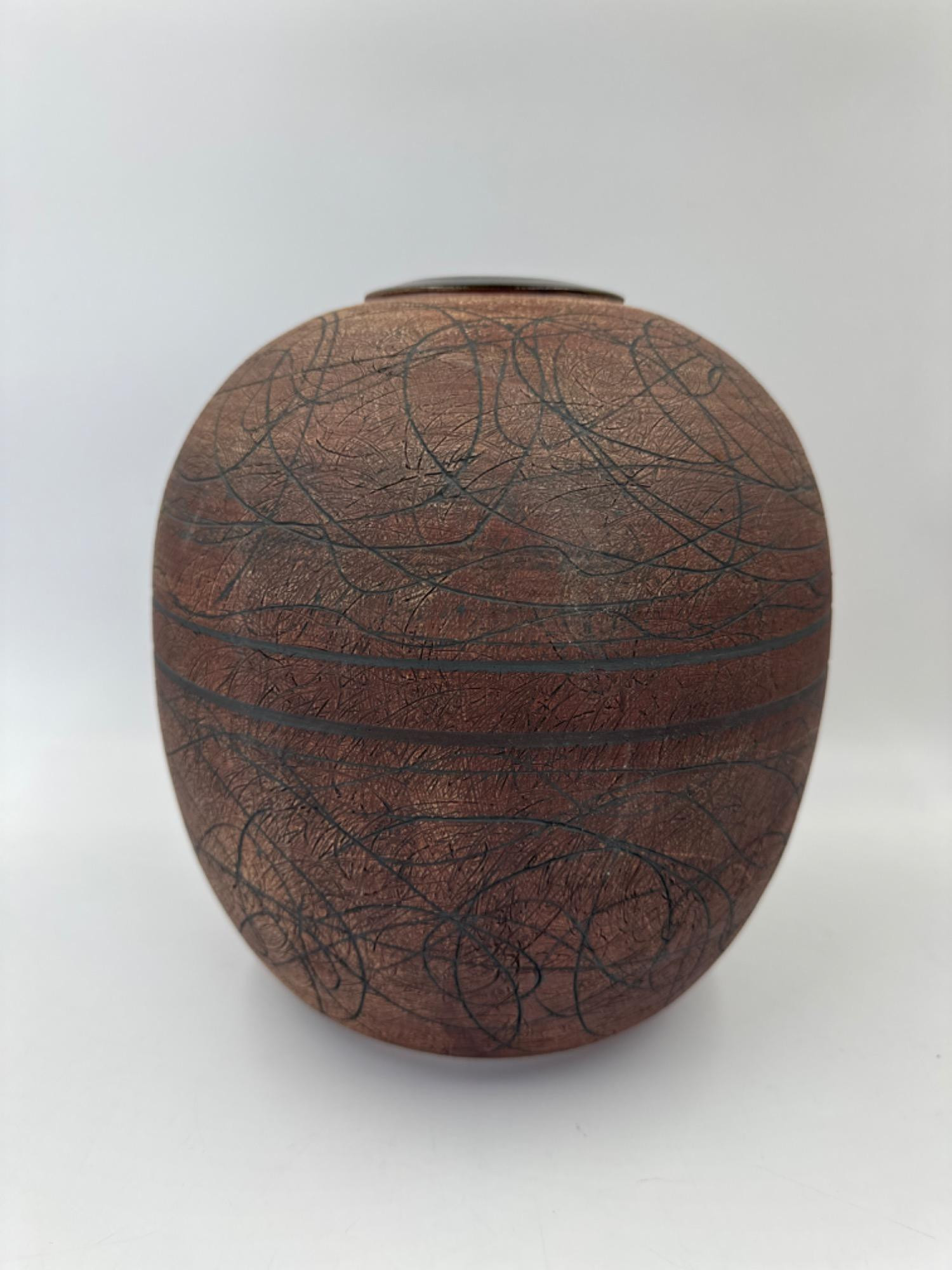 Large 10.5"T Incised Swirl Studio Art Pottery Vessel - JD in Square Potters Mark Approx 9"D Great condition