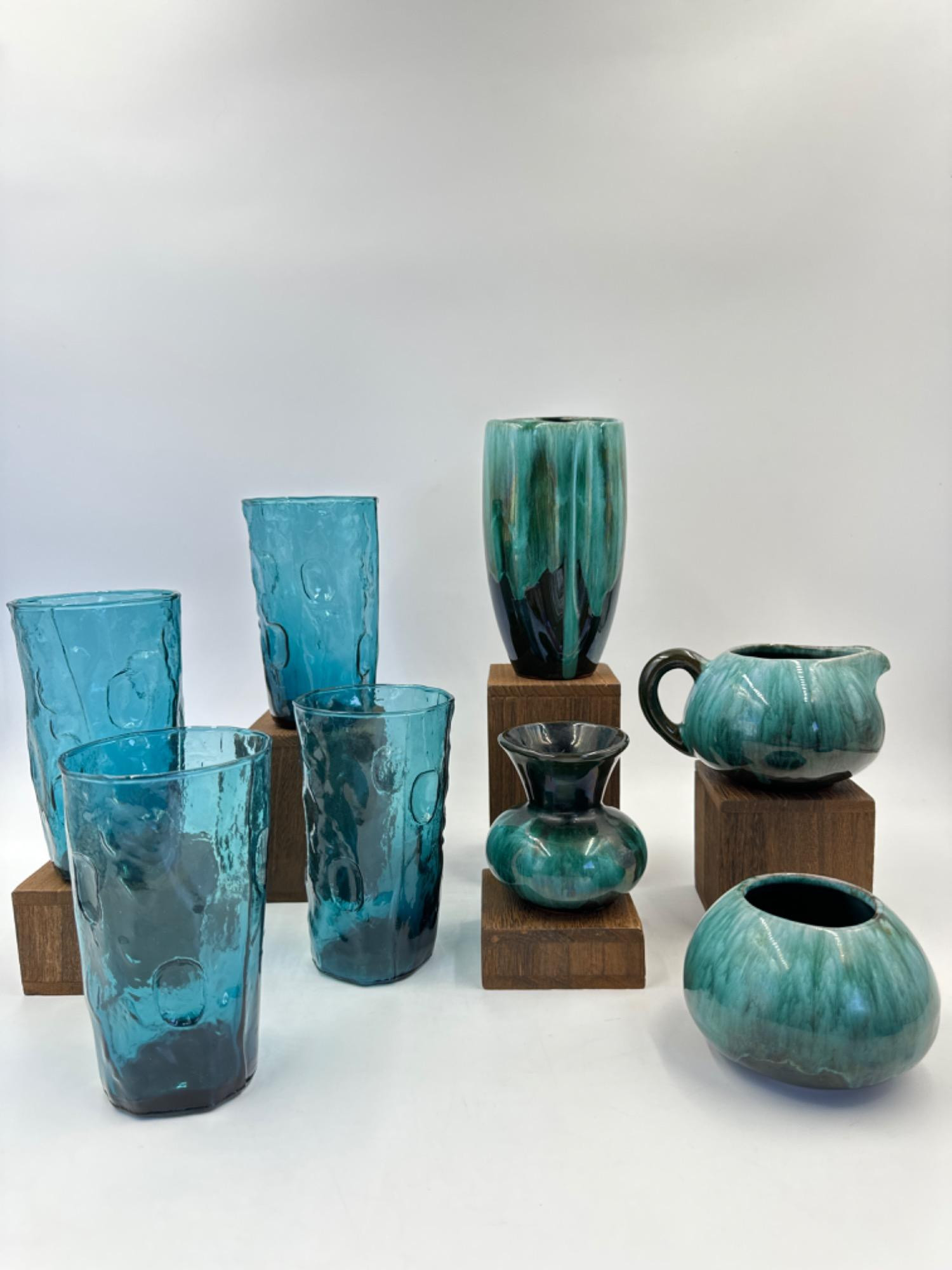 Blue Mountain pottery Pottery pieces measures between 2.75 - 6.5"T 1960s Hand Blown Textured TEX GLASS Decatur - 5.5"T All in excellent condition
