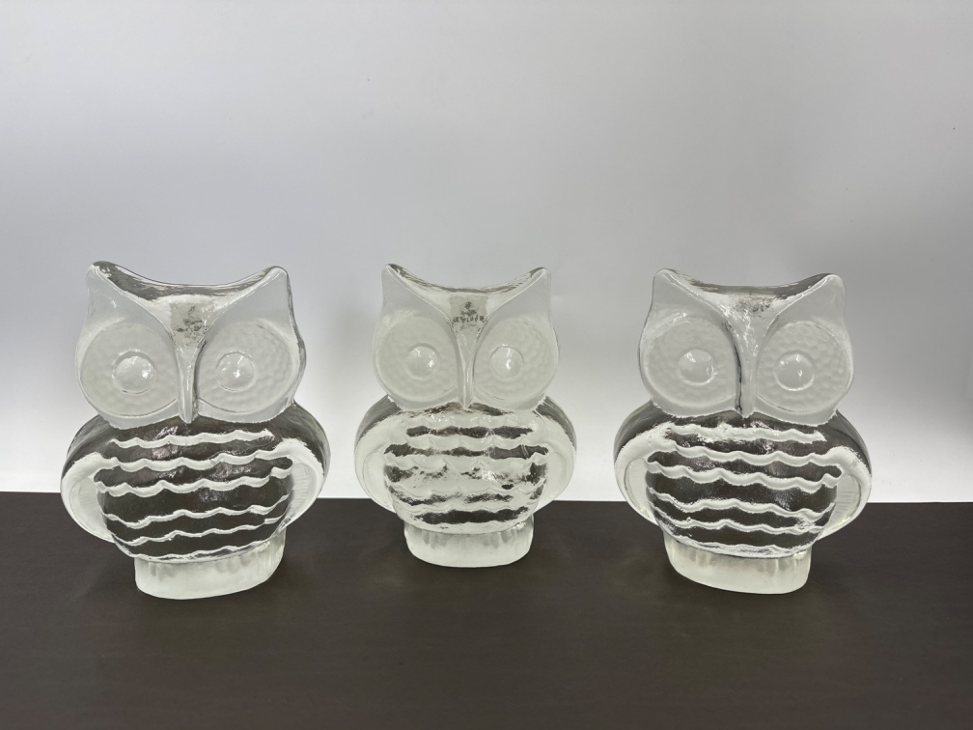 Lot # 114 - Vintage Trio of Clear 6" Viking Handmade Glass Owls