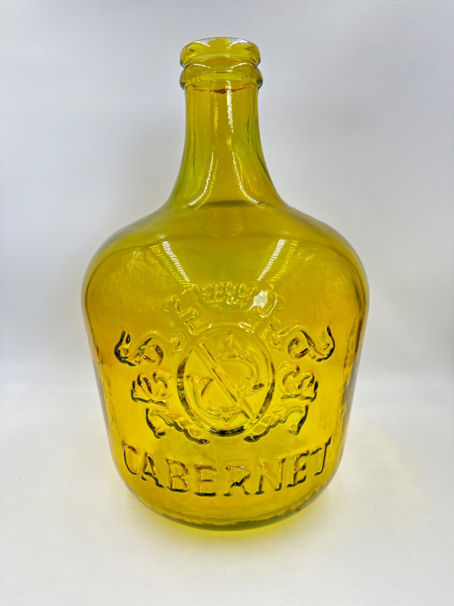 HUGE 17"T Glass w/Yellow Green Flashing Cabernet Wine Jug Flashed on color has started to flake off in some spots.