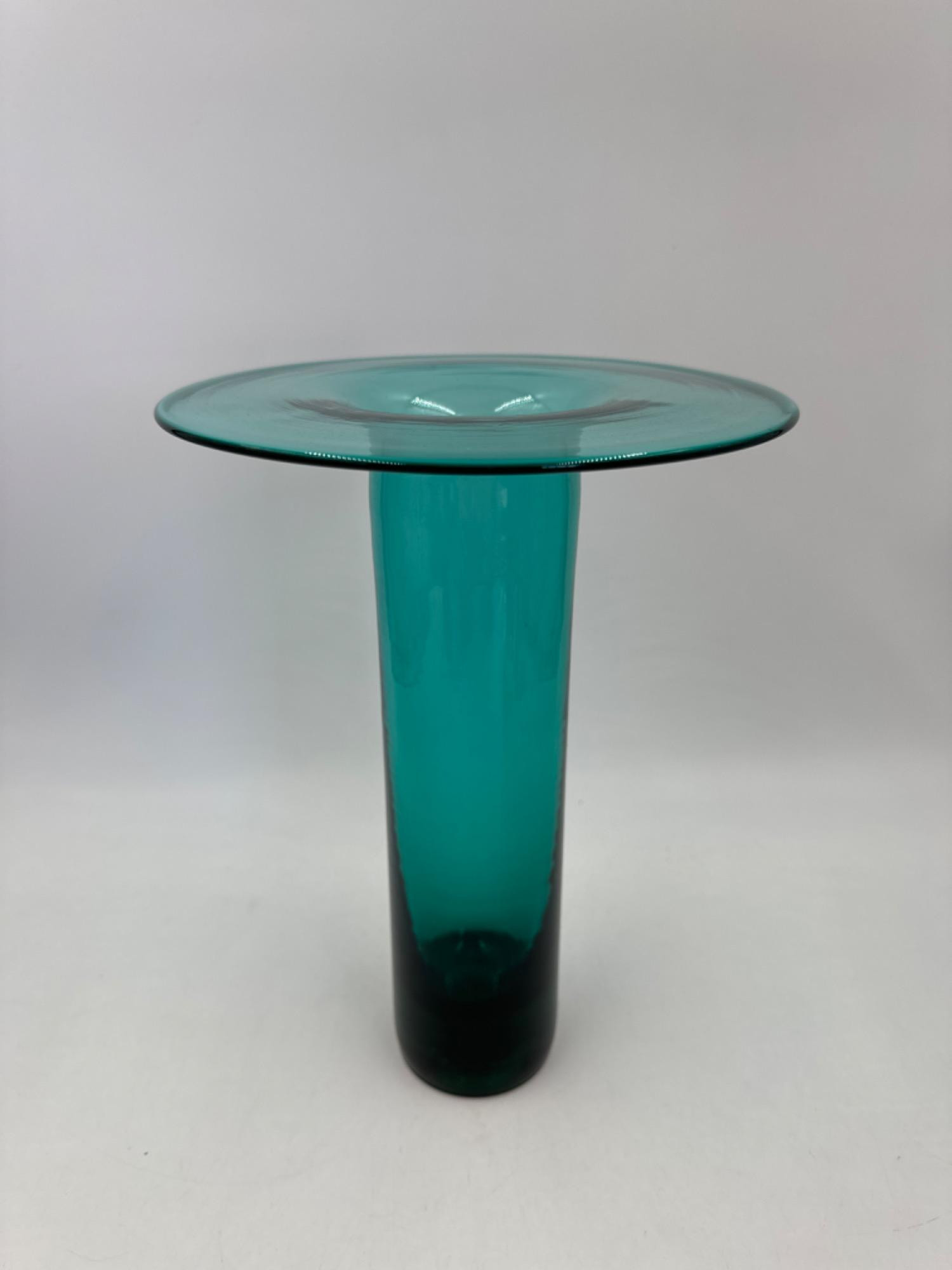 Lot # 147 - Vintage Teal Blenko Blown Art Glass Tall Wide Lipe Vase
