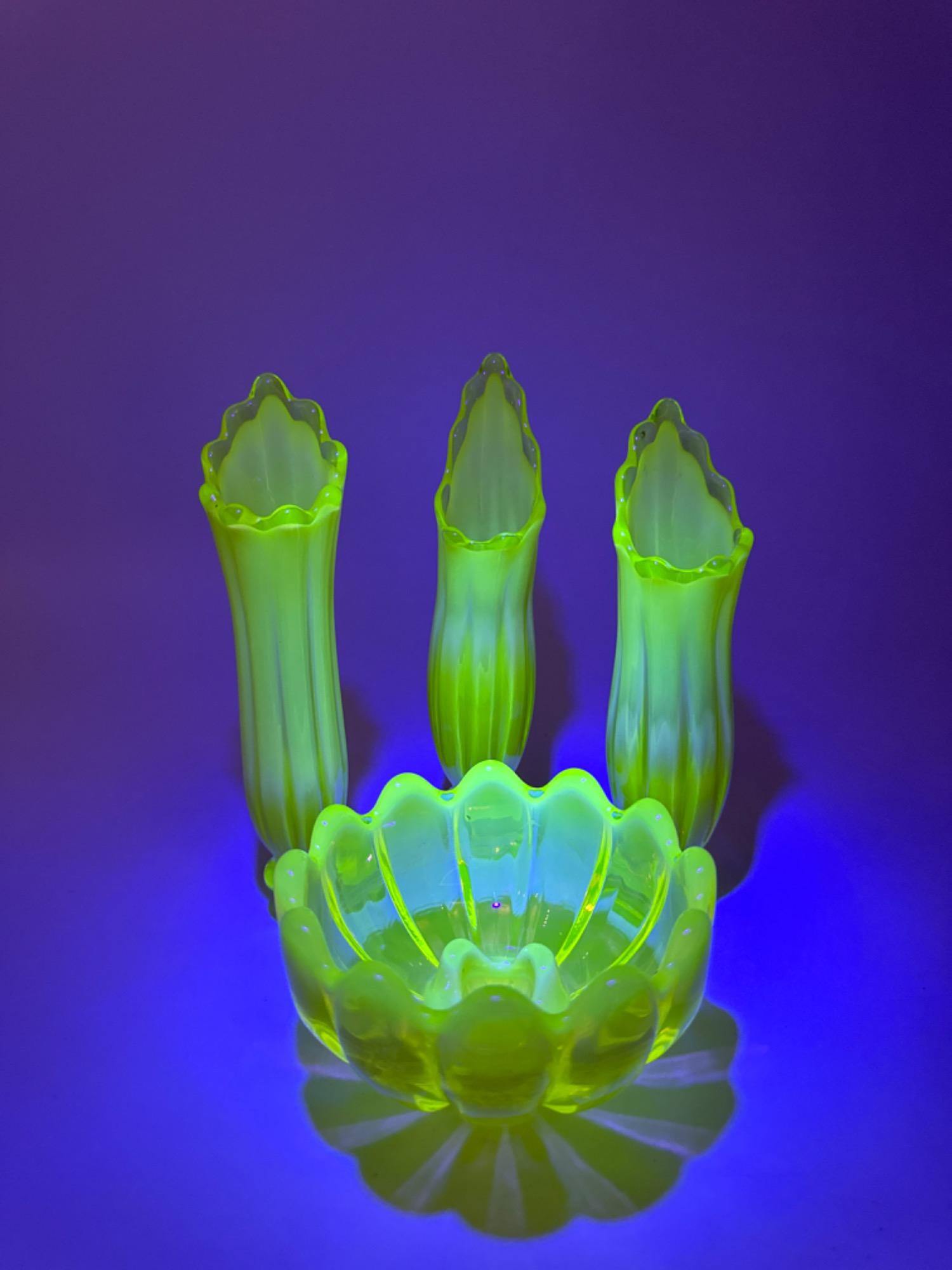 Lot # 16 - Vintage Fostoria Glass Charms - Heirloom Vaseline Opalescent Epergne