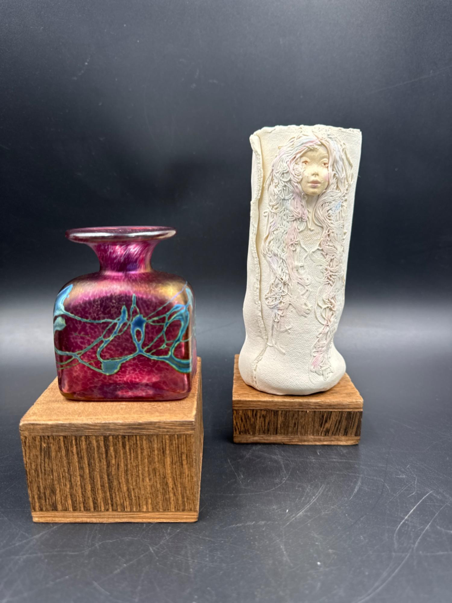 Robert Held Art Glass Pink Bud Vase - 2.5” W x 3” T Clarice Falconer Pottery Vessel - 6"T Both signed and great condition