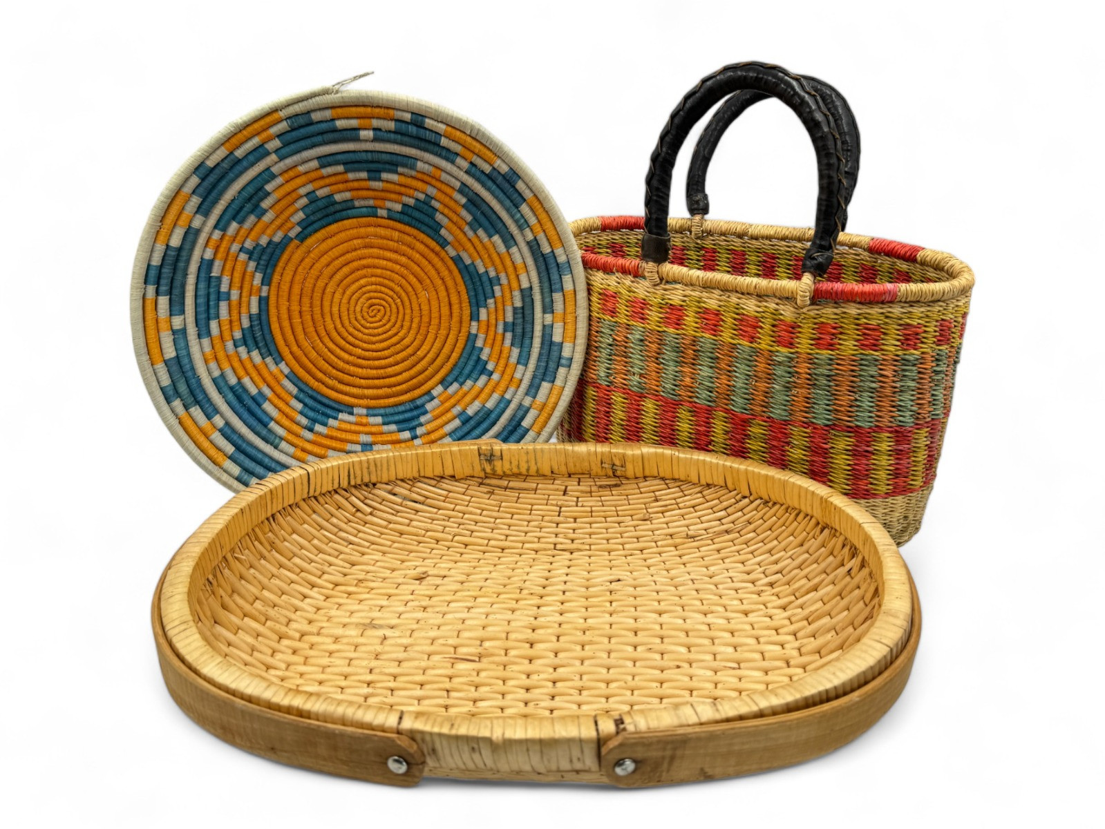 Lot # 89 - Woven Trio - Handled Market Basket - African Coil Basket