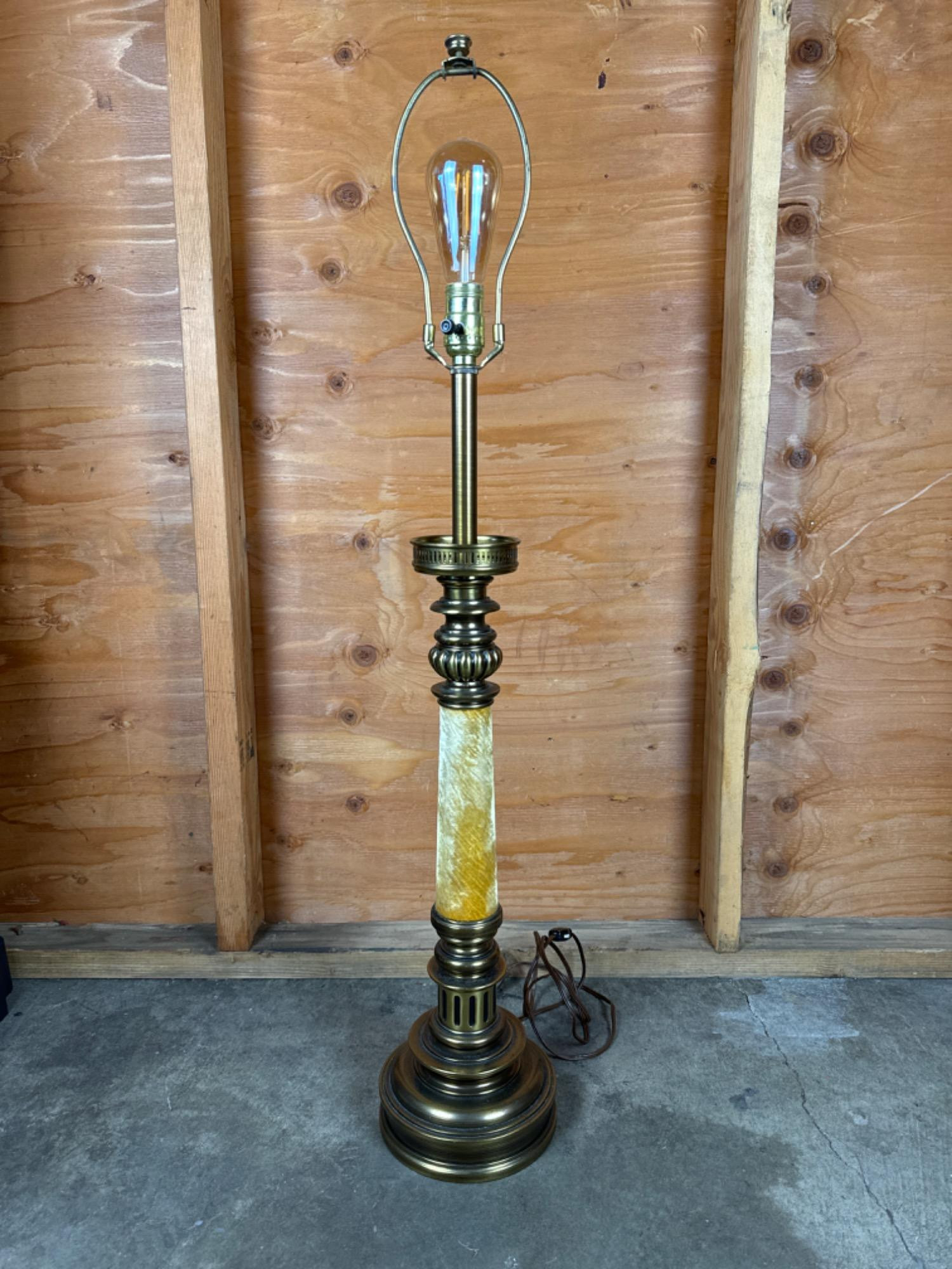 1970s Brushed Brass & Golden Yellow Velour Stiffel Table Lamp Measures 38.5”T to finial Untested