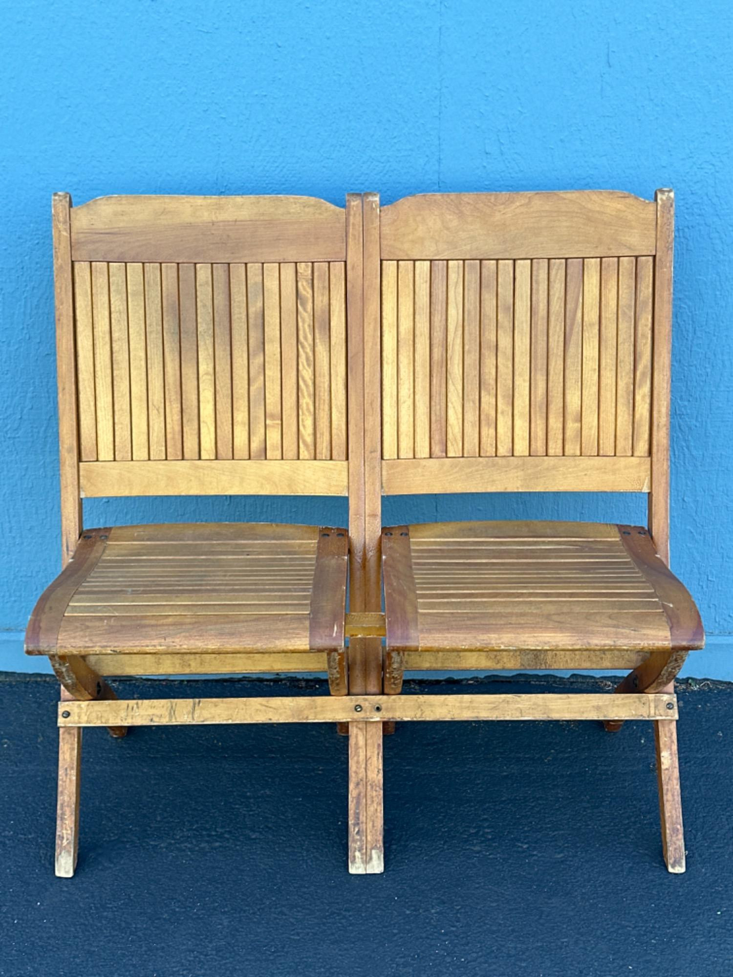 Lot # 153 - Antique Vintage Folding Wood Slat 2 Seat Chairs #1