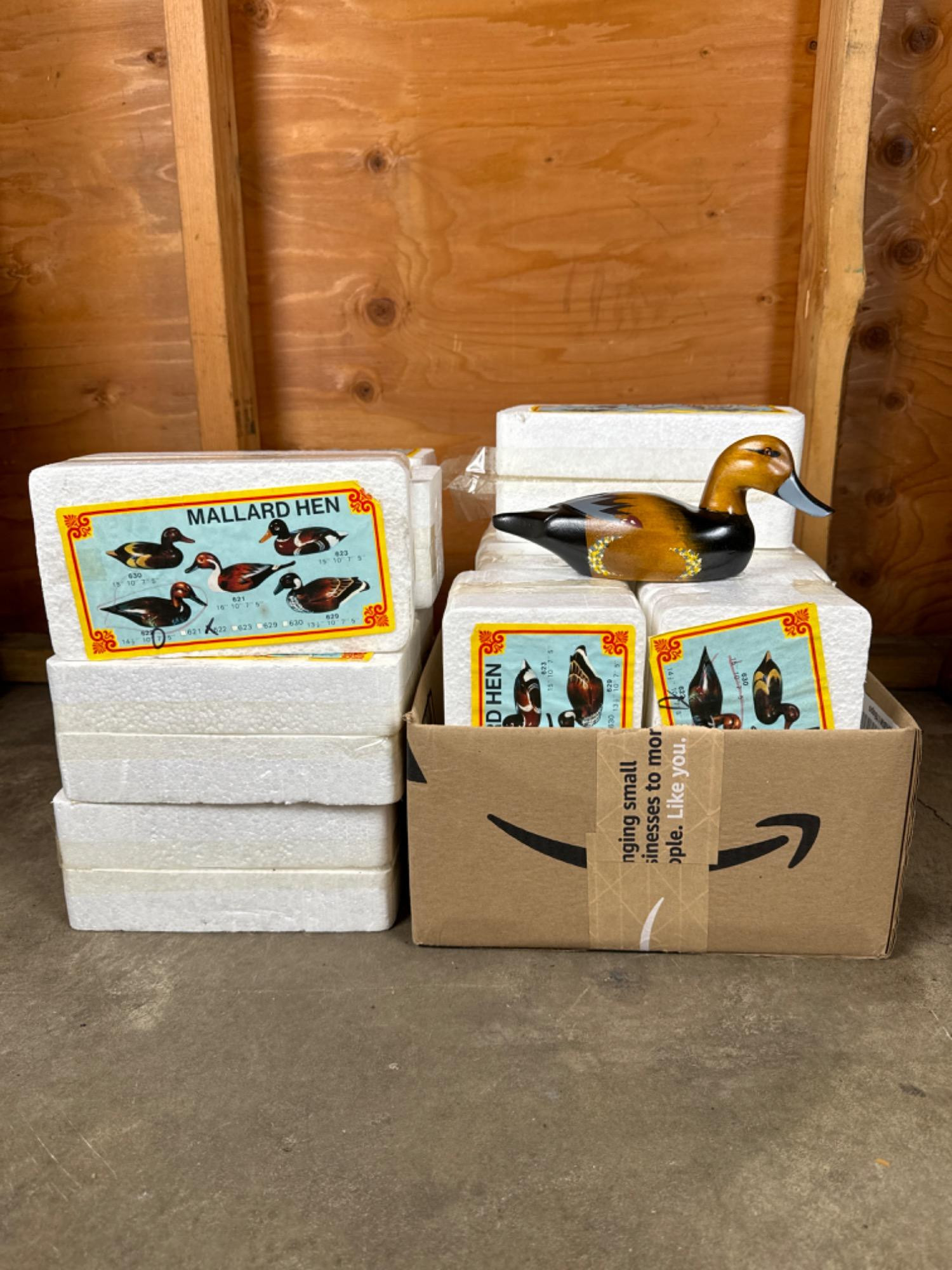 (18) NIB Vintage Deadstock Wood Decoy Mallard Hen Ducks 7” One was opened for display purposes