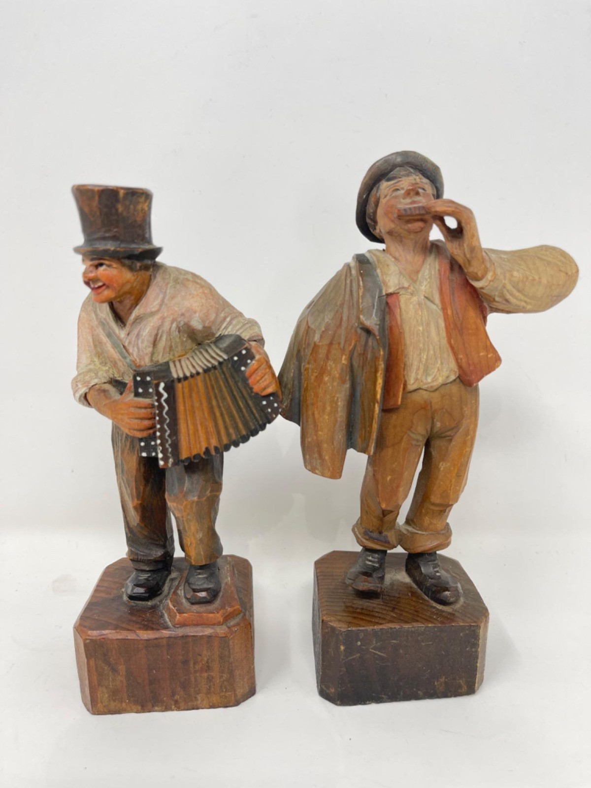 Lot # 2 - (2) Hand Carved Wooden Figures Playing Instruments