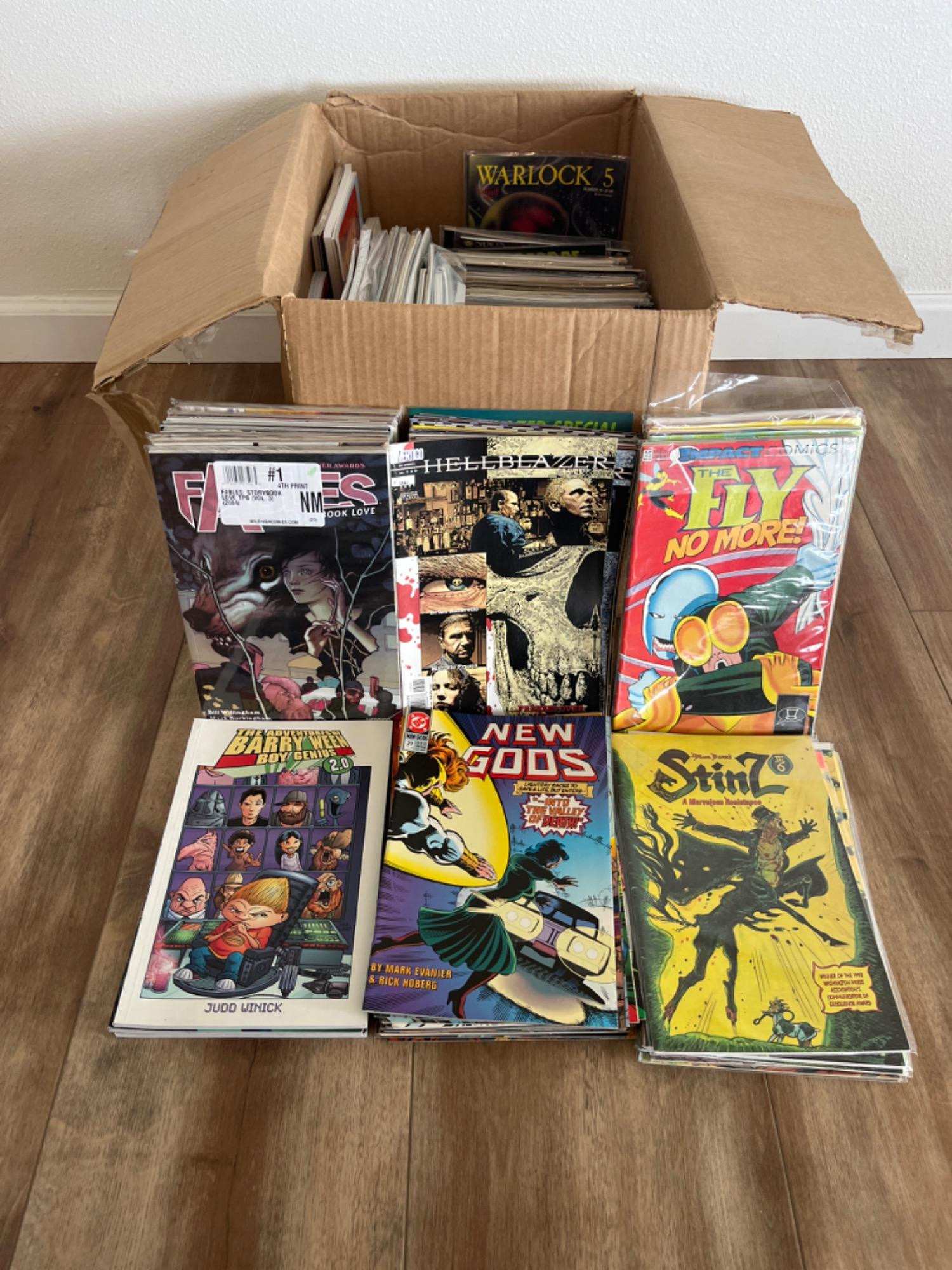Lot # 57 - Misc Comic Book Box - Fables, HellBlazer, The Fly, Stinz, New Gods,Etc