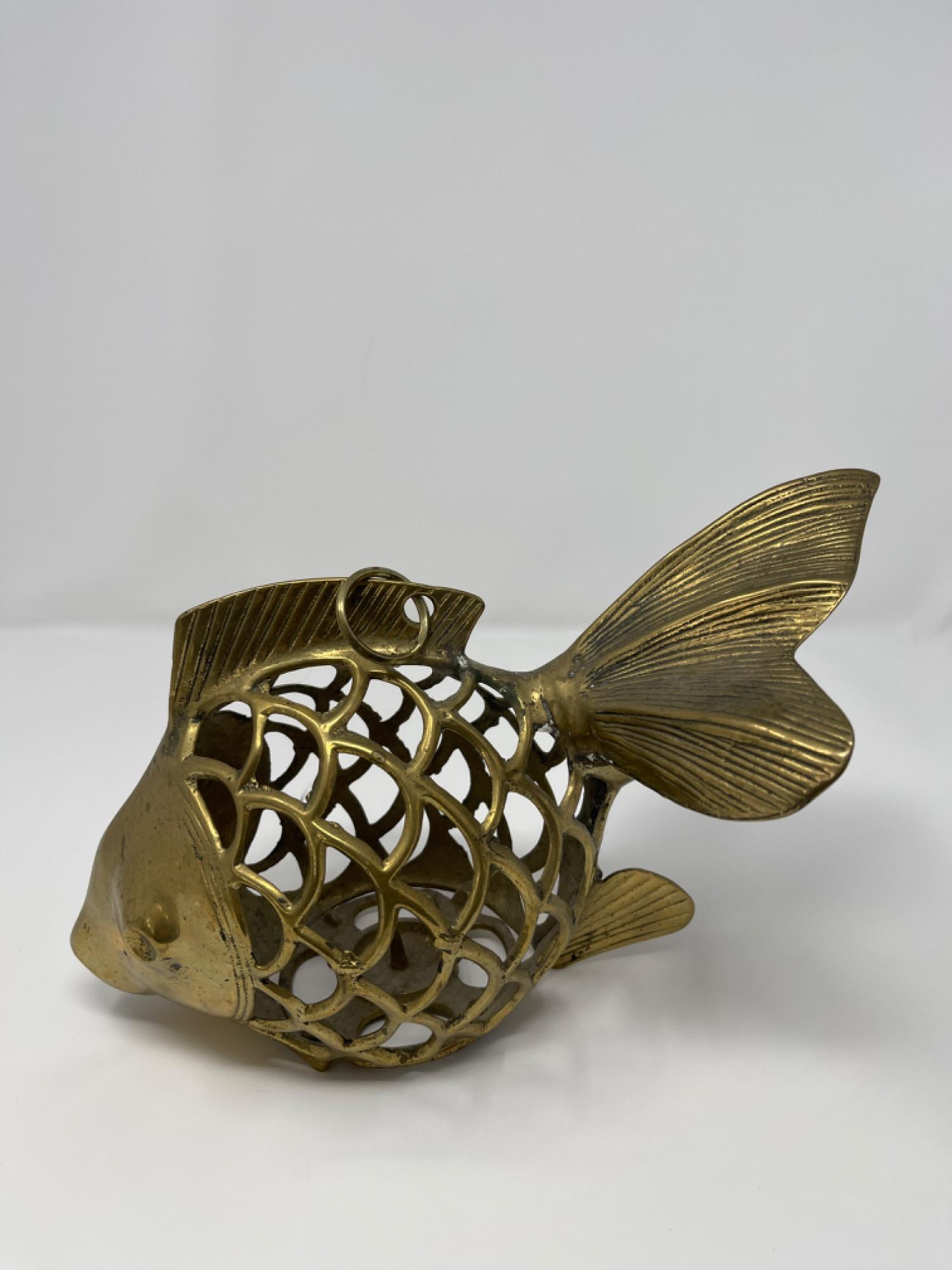 Lot # 40 - MCM Brass Koi Sculpture Candle Lantern Loop Hanger