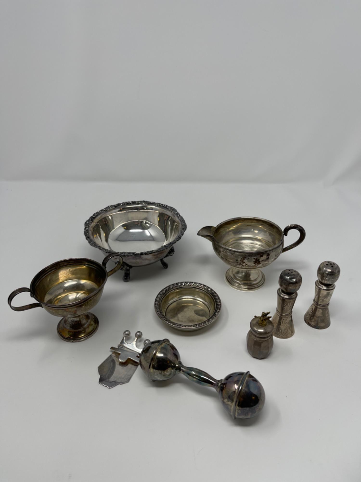 There are two sugar and creamer balls that are weighted. Please see pictures for all the measured sterling in grams.