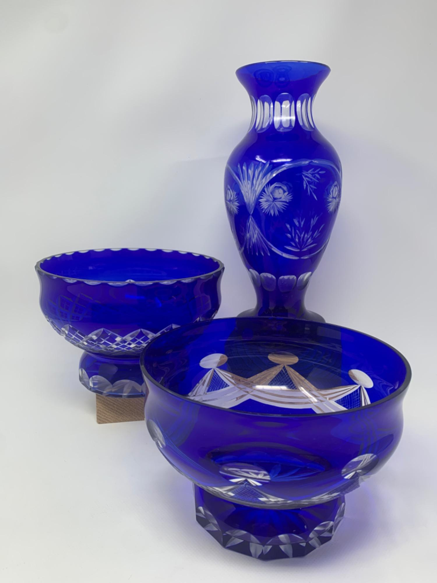 Lot # 131 - Blue and Clear Cut Glass Decor