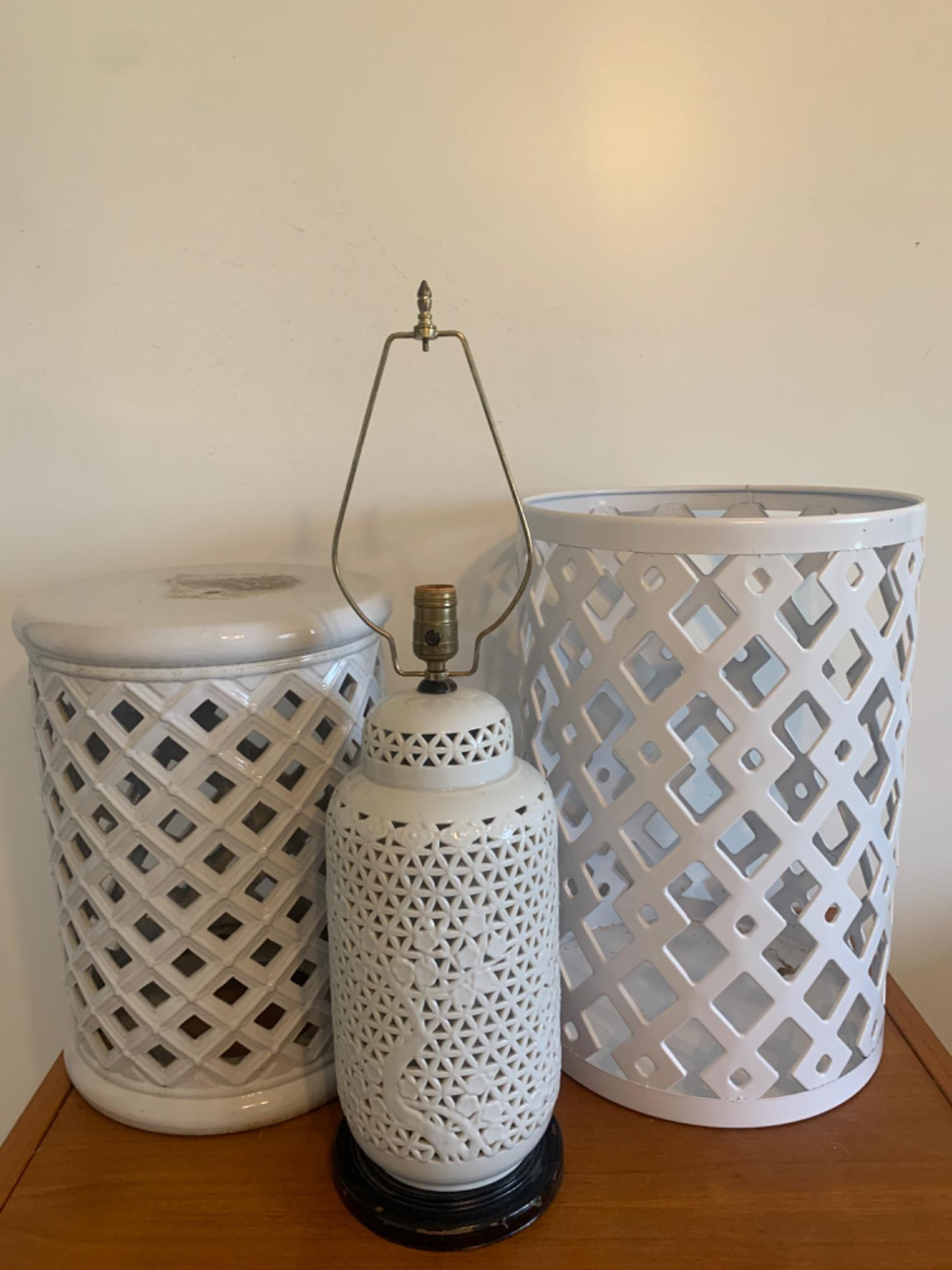 Lot # 158 - Large White Metal and Ceramic Geometric Decor