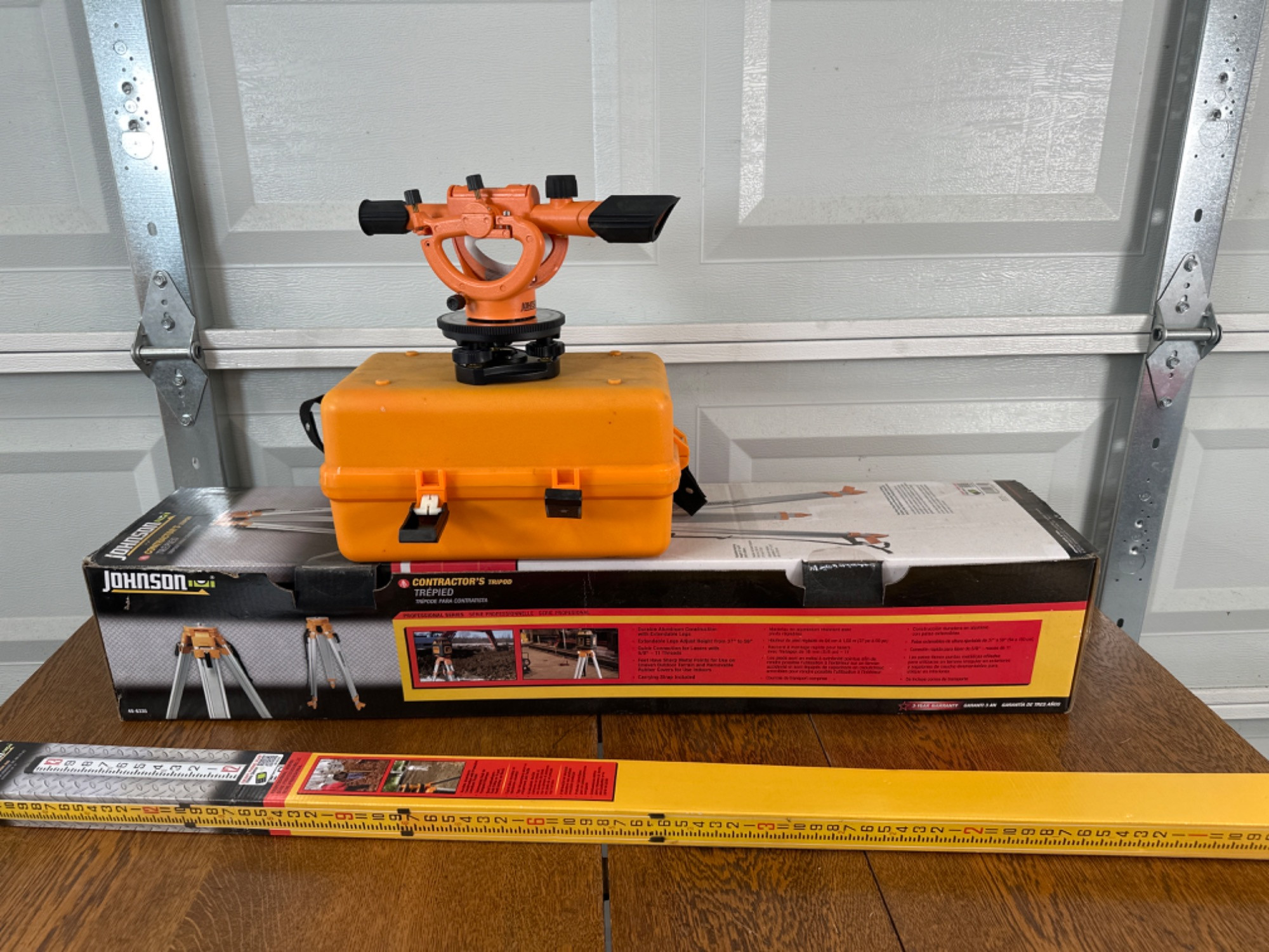 Johnson Tool Set Includes: Johnson 22X Builder's Transit Level (Model 40-6910) - Case included Johnson Contractor Tripod Johnson 13' Grade Rod
