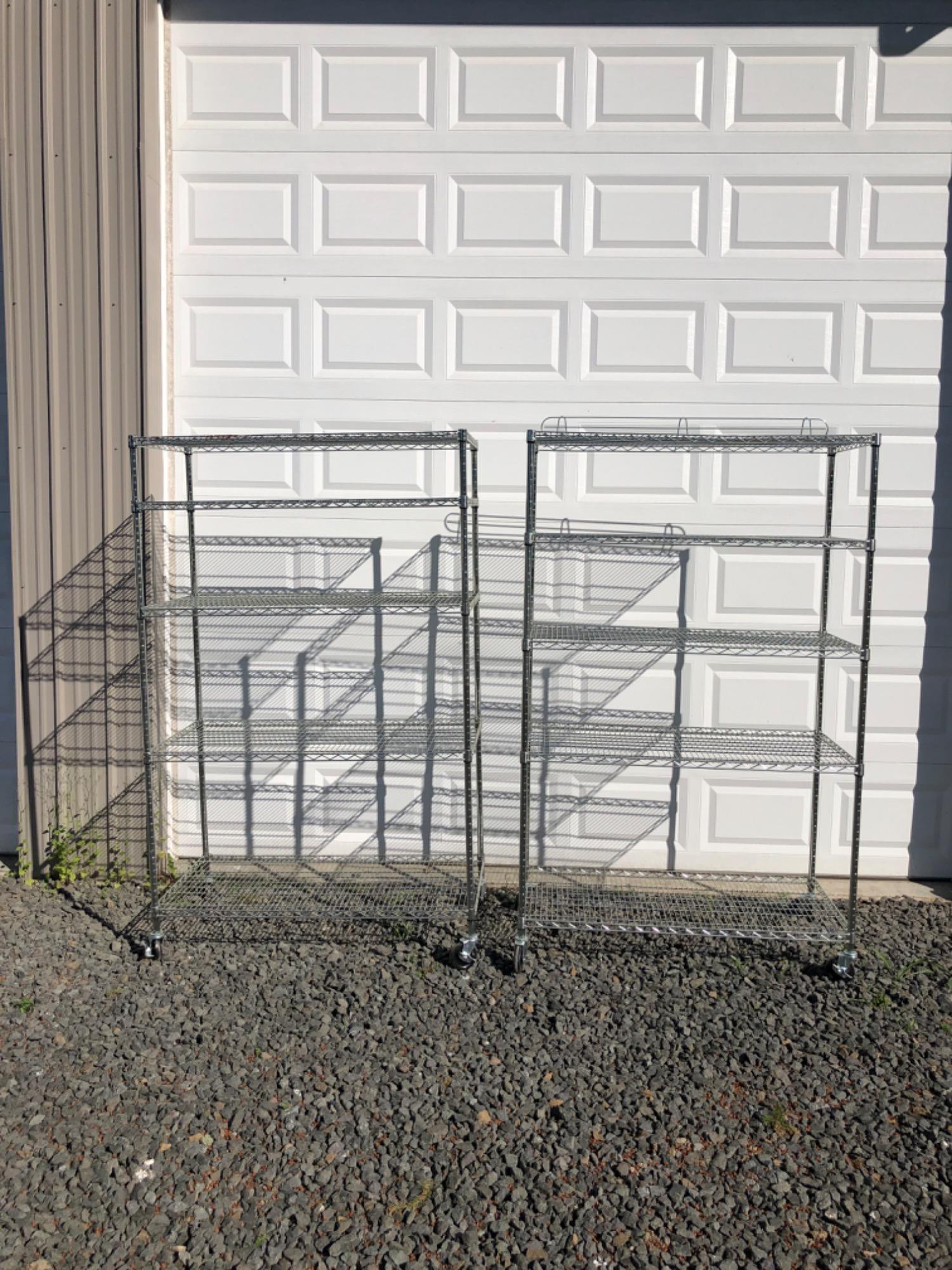 2 Rolling Chrome Wire Shelving Units Approximate Dimensions: : 77 inches high x 23.5 inches deep x 47 inches wide Two Chrome Wire Rolling Storage Racks Bidding on this lot is an agreement that: (1.) If you intend to disassemble this item for transport, that you will bring the necessary tools to do so and you have the manpower to disassemble and lift and place in your vehicle. If these