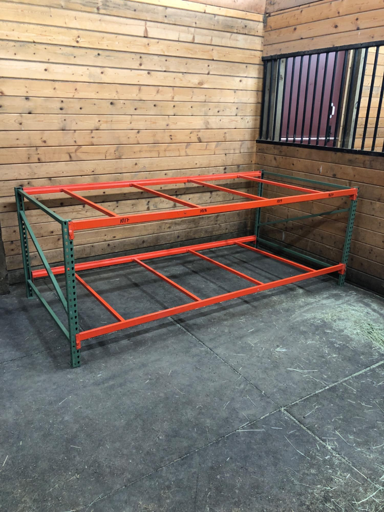 1 Industrial Metal Shelving Rack Dimensions: 100 inches long x 3 feet high x 4 feet deep Does not include plywood tops Bidding on this lot is an agreement that: (1.) If you intend to disassemble this item for transport, that you will bring the necessary tools to do so and you have the manpower to disassemble and lift and place in your vehicle. If these