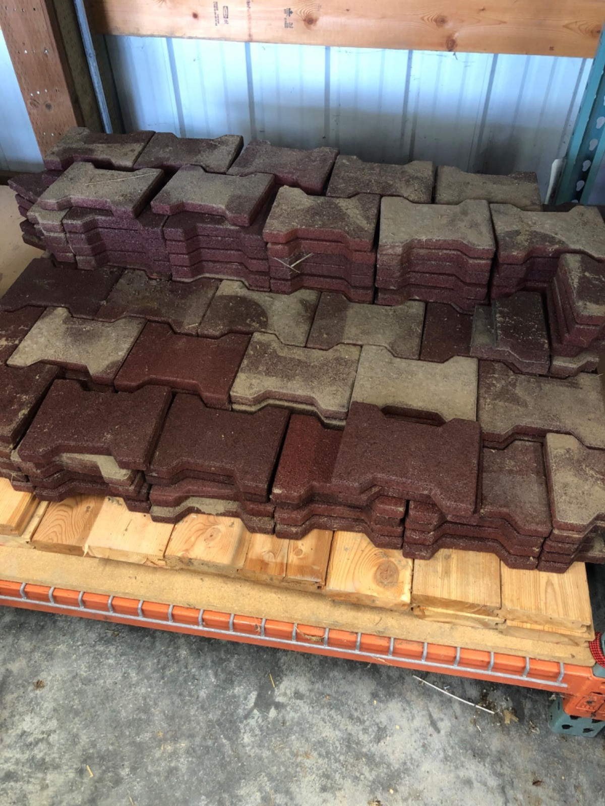 Pallet of Interlocking Rubber Pavers Non-slip surface and water proof and water permeable for quick drainage See photos for dimensions of each paver