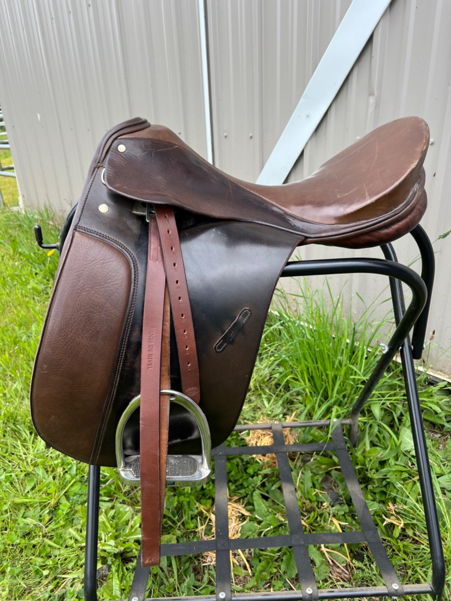 Hannover 9041 Original Federbaum Max Hopfner leather saddle. 17" width, 5" gullet. Includes Kwik-out stirrups
