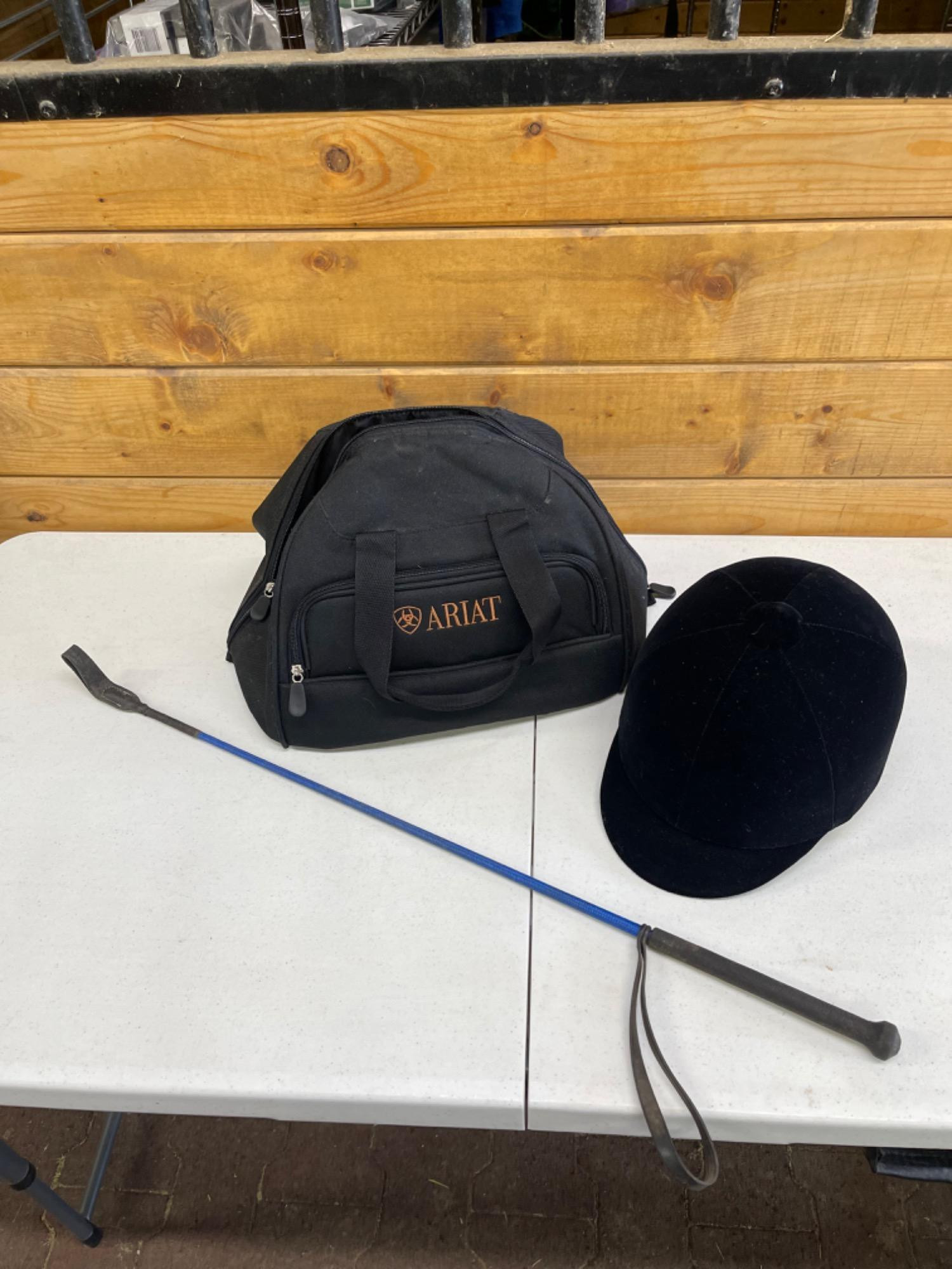 Ariat Riding Hat & Bag Including Crop Riding Hat ssize 6 3/4