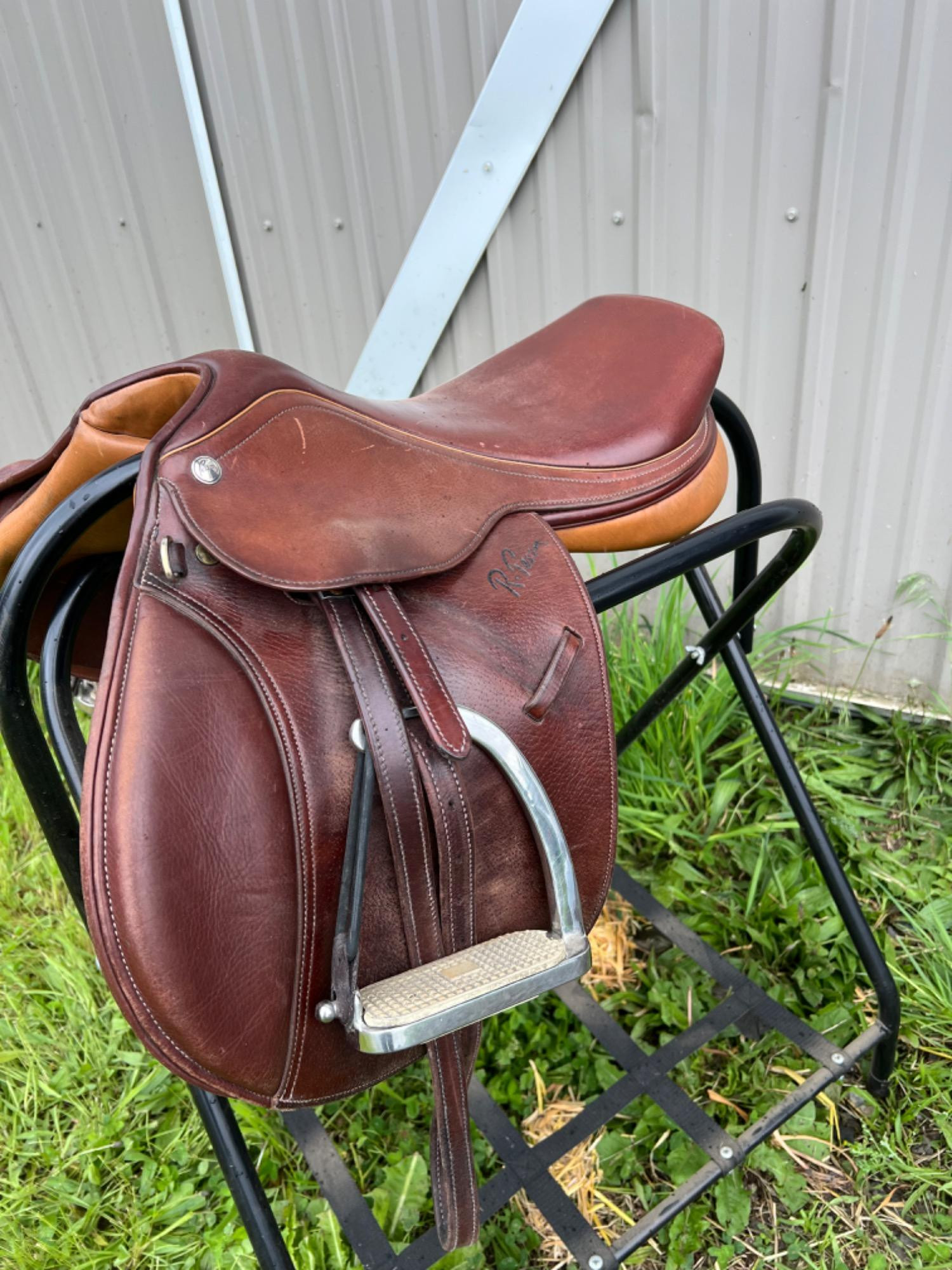 Rossi & Caruso Leather English saddle made in Buenos Aires, Argentina. Size 17 Inches Wide Short Flap