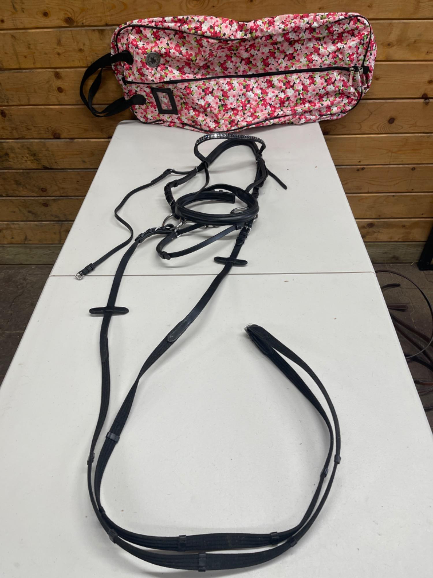 Lot # 93 - Horz O/S Bridle, Drop Nose Band French Link Bit w/bag