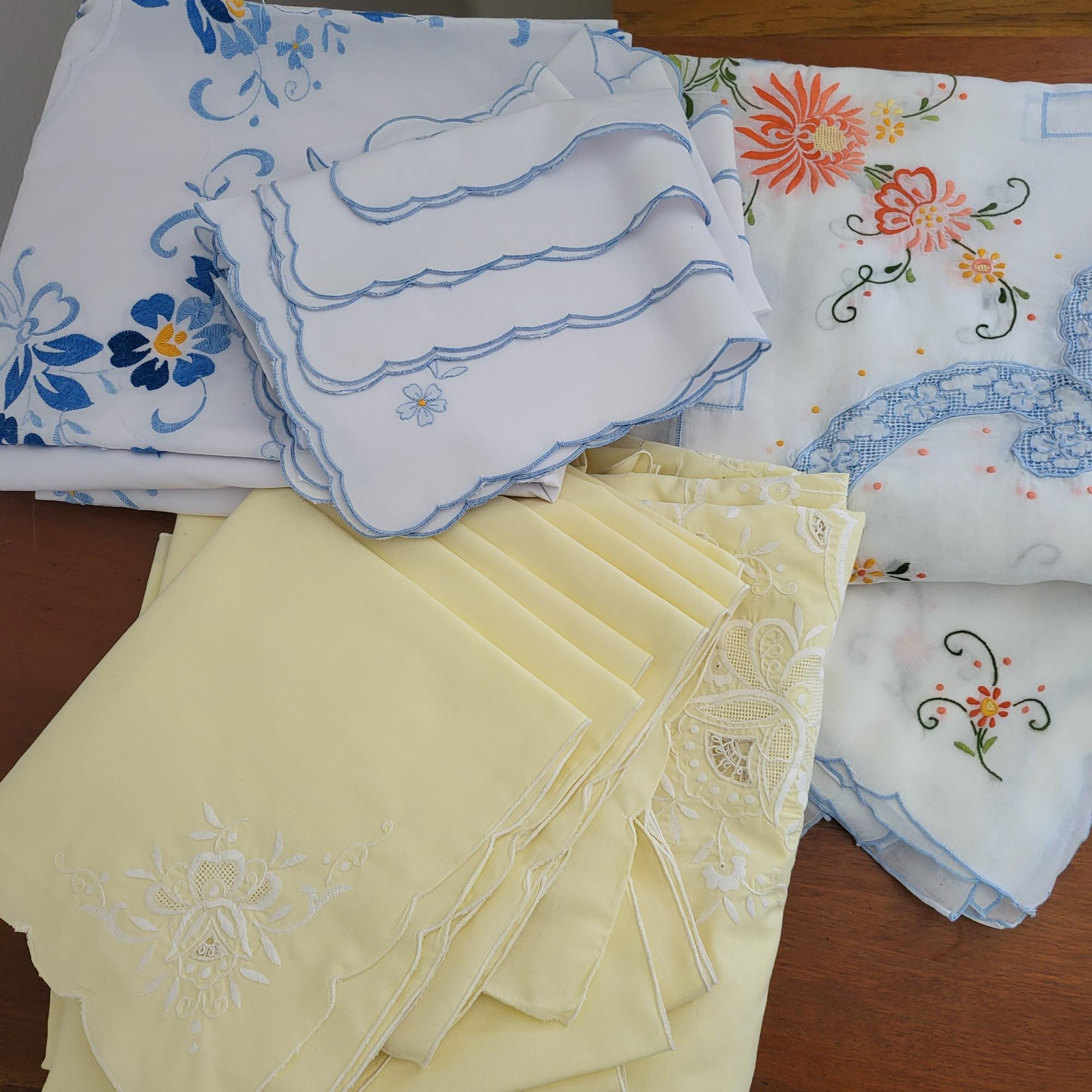 Lot # 38 - Vintage Embroidered Tablecloths With Coordinating Napkins