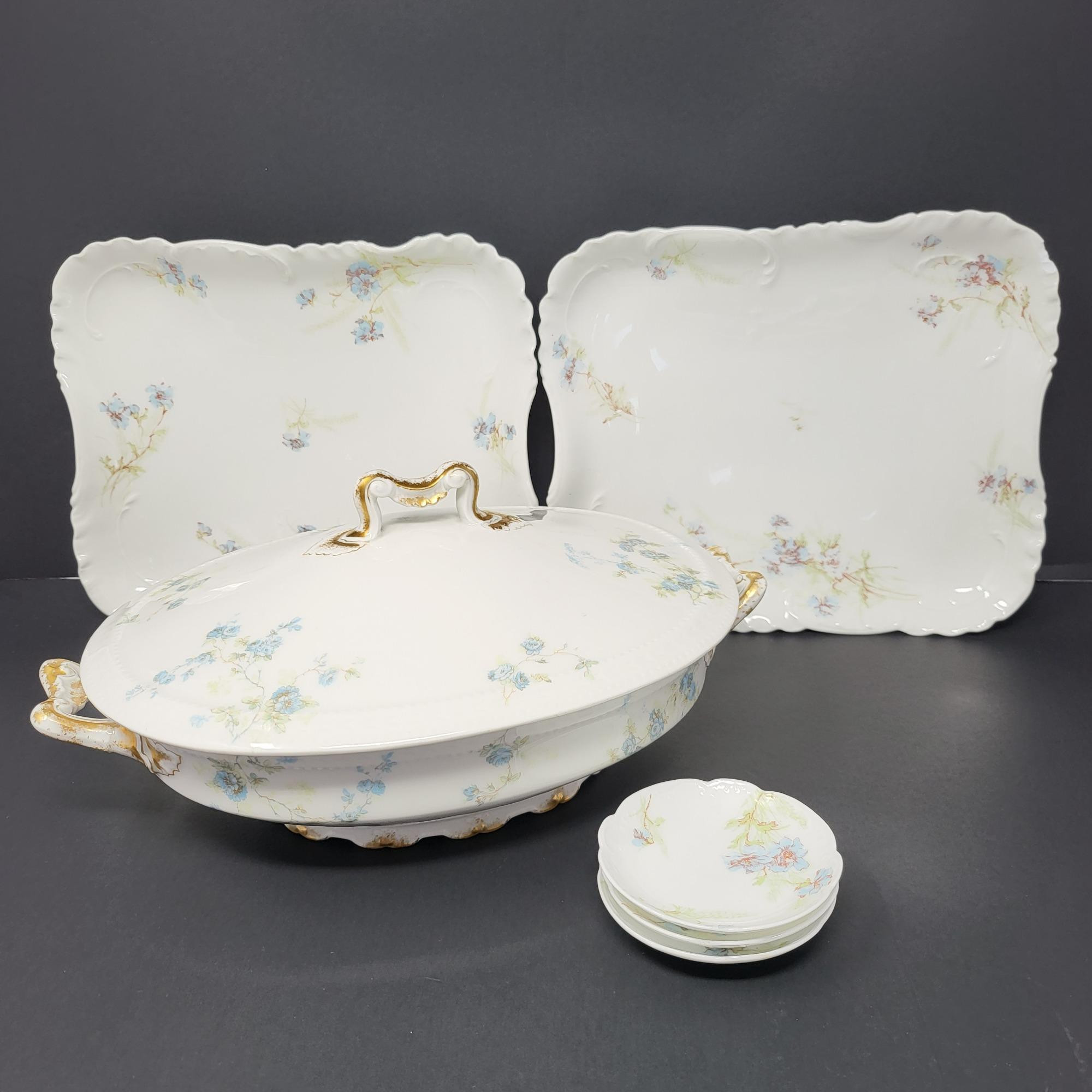 Lot # 116 - Haviland & Co. Limoges France Blue Floral Serving Ware