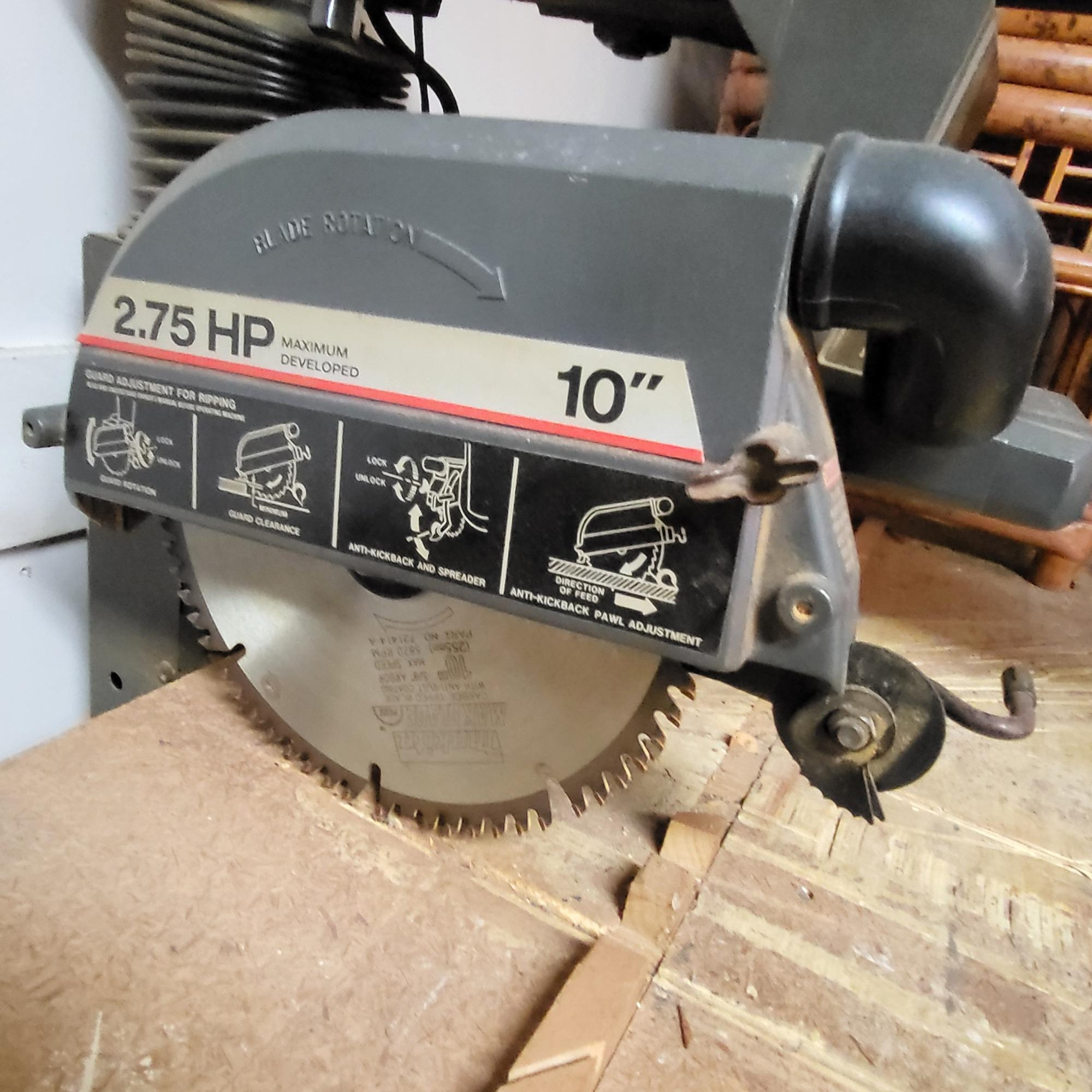 Vintage Sears Craftsman 10" Electronic Radial Saw, 2.75hp. Bench/Cabinet measures 44" long x 28" wide x 38" tall. Saw is 19" tall x 35" deep x 8" wide. This is a heavy unit. Bidding on this lot is an agreement that: (1.) You will have 2 capable, able bodied persons to lift and load at a minimum. (2.) You will bring a hand truck and/or any other tools needed to remove this item. If these steps are not followed your item will be forfeit and no refund given. *Note, the driveway is about a 20 degree incline.