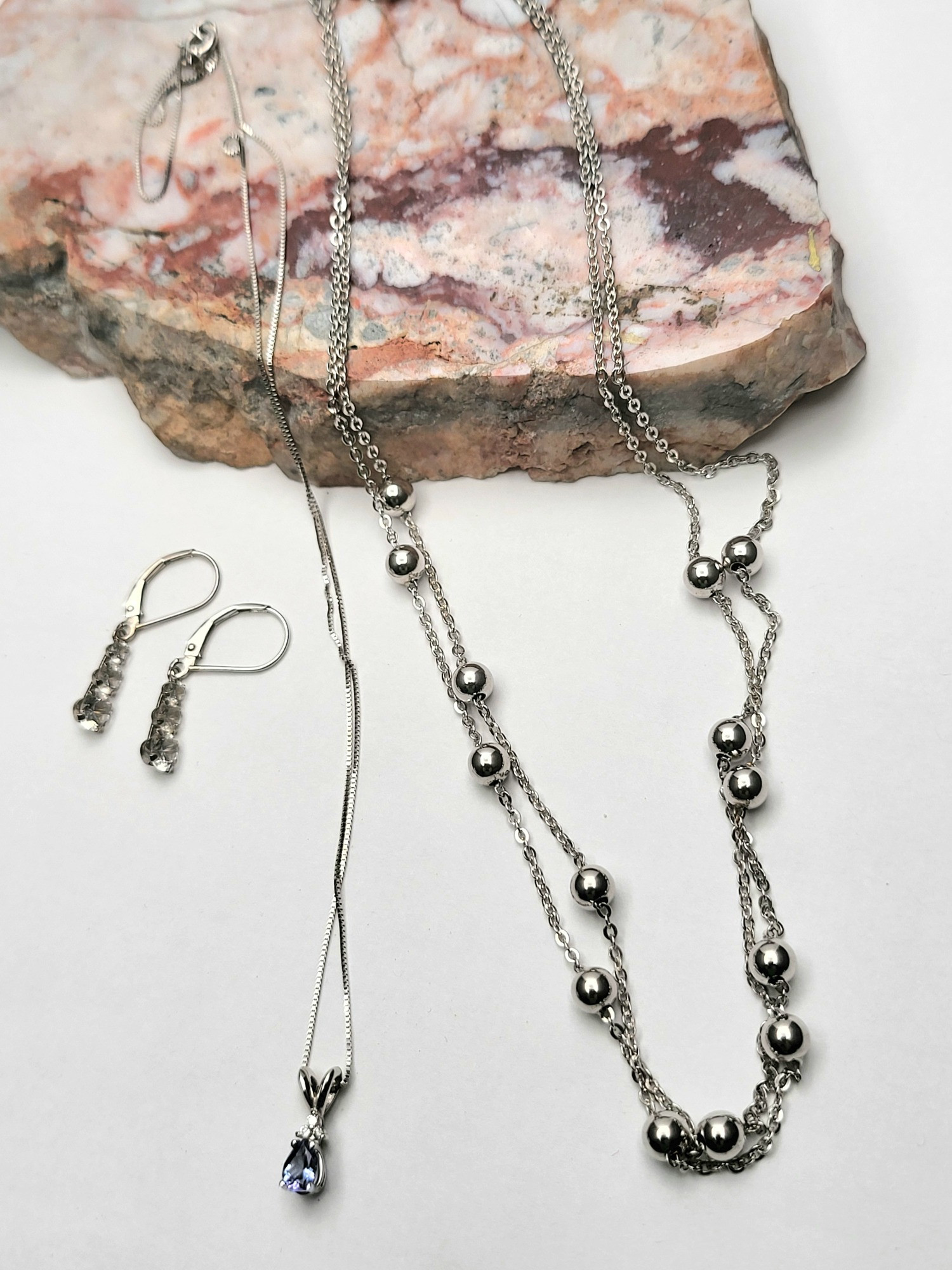 Lot # 26 - 14k White Gold Necklaces & Earrings 6.5gr