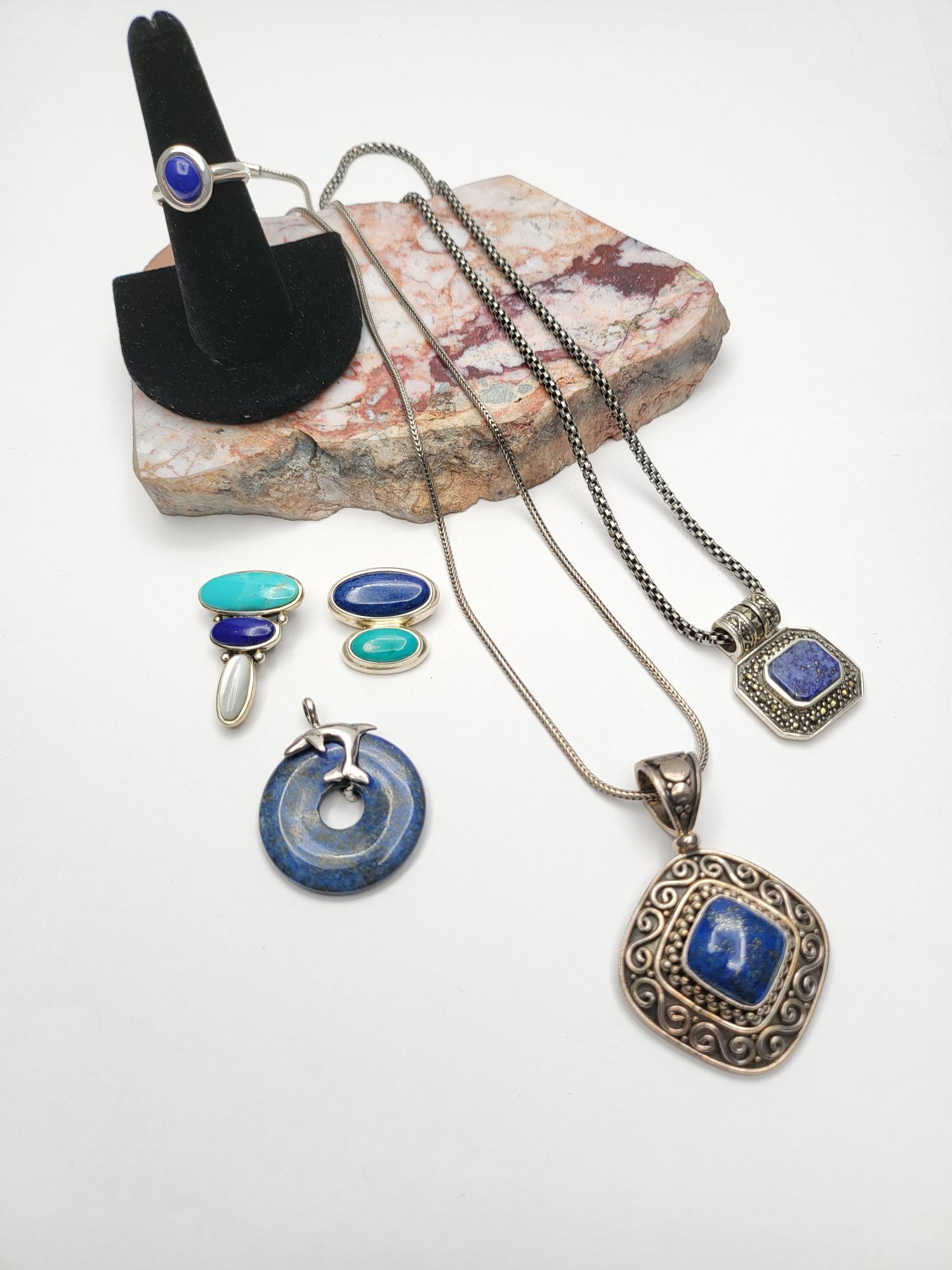 Lot # 62 - Blue Lapis & Turqoise Sterling Silver Jewelry 74gr