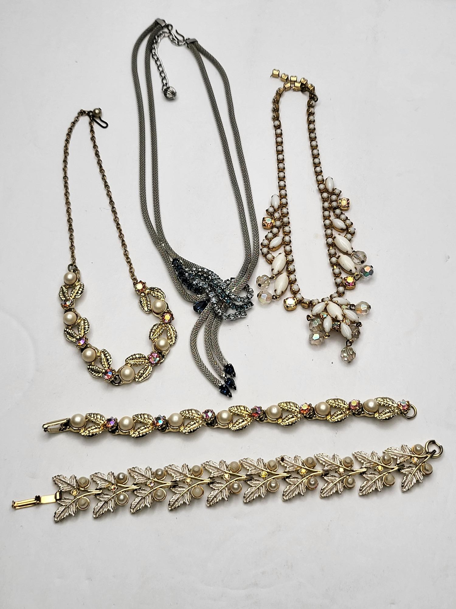 Lot # 89 - Vintage Jewelry Necklaces & Bracelets Blue, Milk Glass + More