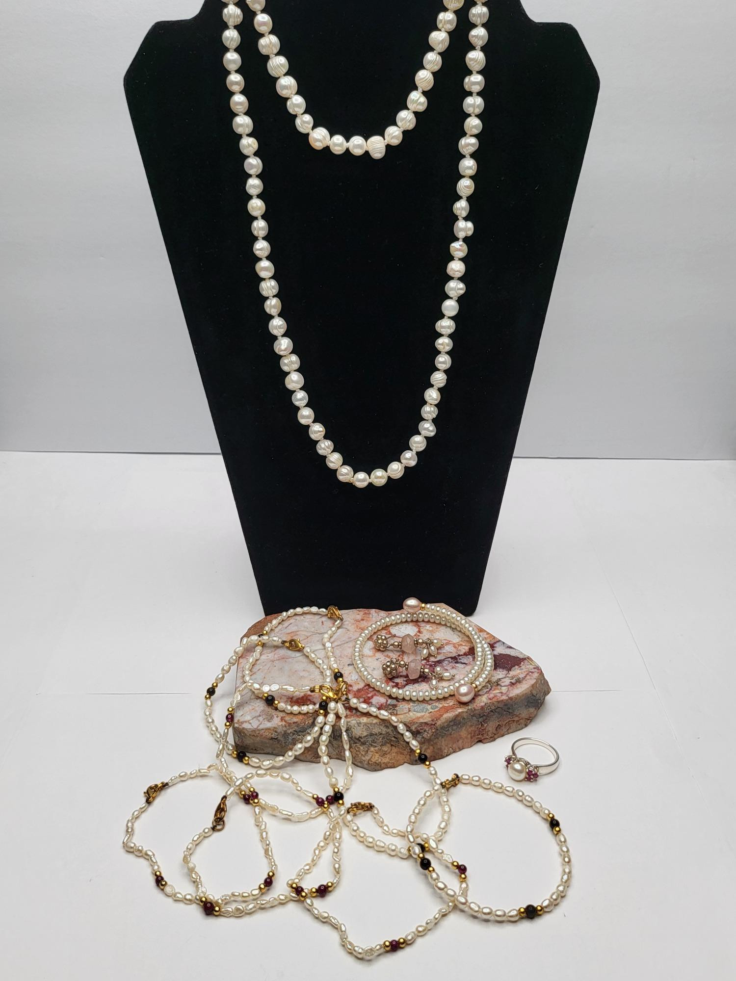 Lot # 112 - Genuine Pearl & Ruby Necklaces Bracelets Sterling Ring