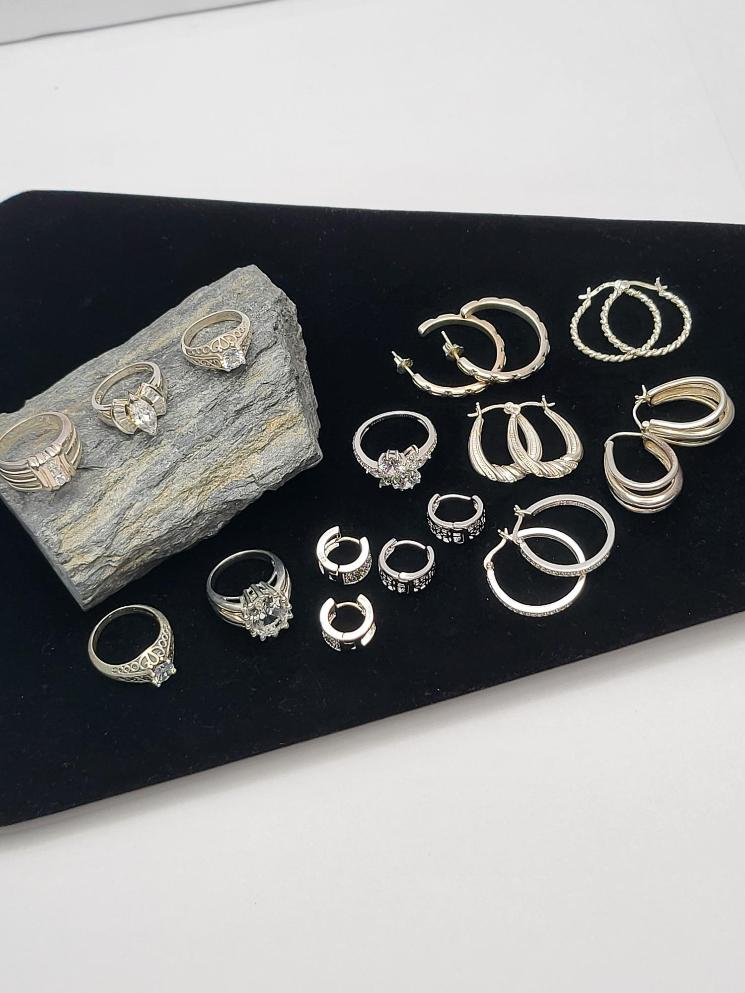 Lot # 121 - Sterling Silver Jewelry, Clear Stones 62gr